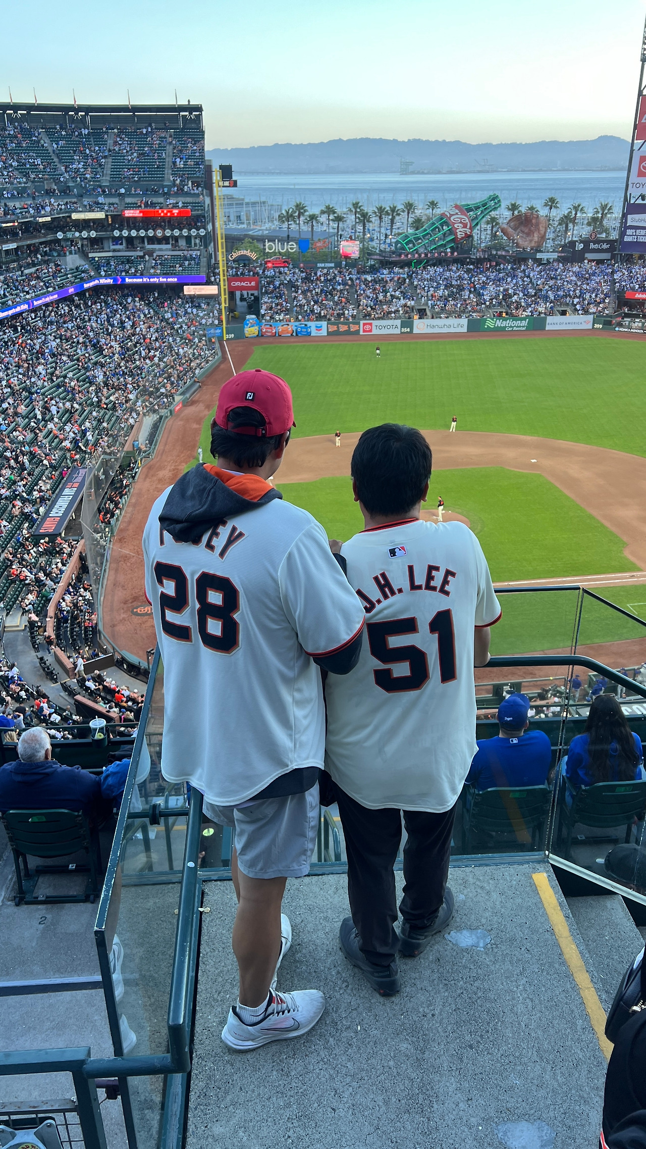 우리나라 야구장과는 또 다른 분위기를 즐기고 오타니 홈런도 직관하면서 첫 미국프로야구 관람을 마쳤다. 8년 전 신혼여행 때 야구에 전혀 관심이 없던 와이프가 혼자 다녀오라는 말에 다저스 소속이었던 류현진을 못 봐서 한이 맺혔었다. 비록 이정후는 없었지만 미국에서도 가장 아름다운 야구장으로 꼽히는 오라클파크에서 오타니 홈런도 직관을 해서 오랜 한이 풀렸다.