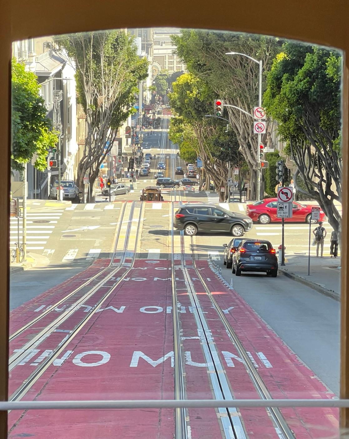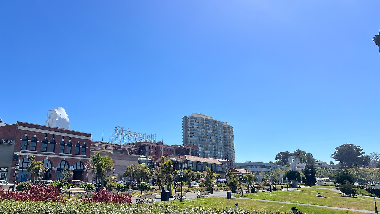 샌프란시스코는 언덕이 많은 독특한 지형 때문에 도보 이동이 어려워 케이블카가 발달했다고 한다. 우리가 알고 있는 공중으로 다니는 케이블카와는 다르게 지상에서 운행하는 트램 같았다. 샌프란시스코 언덕을 가로지르며 아름다운 바다 전망을 제공하는 가장 인기 있는 Powell-Hyde Line 루트의 종점이 기라델리 스퀘어(Ghirardelli Square) 앞에 있어서 타보기로 했다.