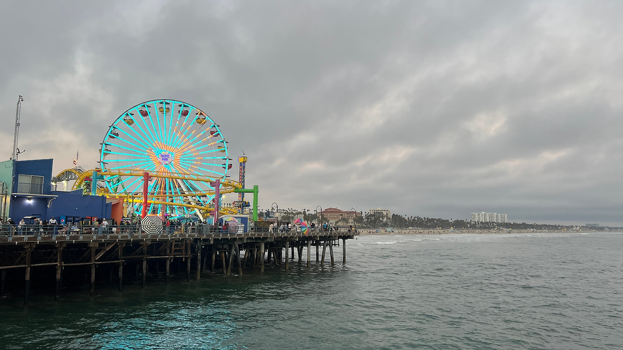 LA에서 마지막 일정으로 산타모니카 해변을 찾았다. 신혼여행 때 여기 와서 노을을 보고 저녁도 먹었었는데 신선한 바람과 적당한 온도가 기억에 남아있는 곳이다.