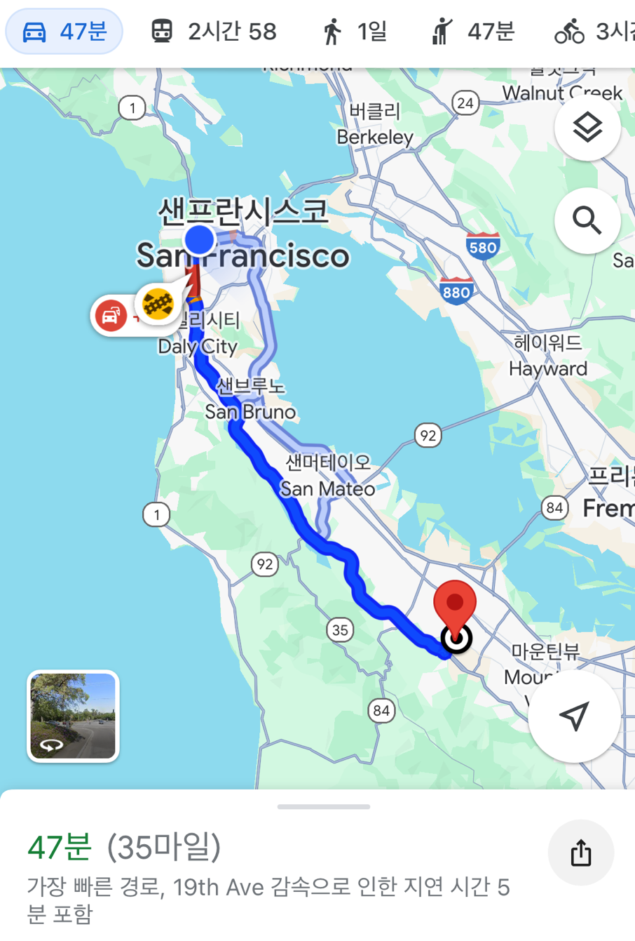 어릴 적 동네친구가 샌프란시스코에 살고 있어서 우리의 국제 운전면허증을 그 친구집으로 택배 보내 놓은 상황이었다. 유효기간 1년이 지나버린 국제운전면허증 갱신을 위해 샌프란시스코부터 일정을 시작해야만 했다. 참고로 국제운전면허증은 인터넷으로 발급이 가능해서 한국 부모님 댁으로 수령했다.
