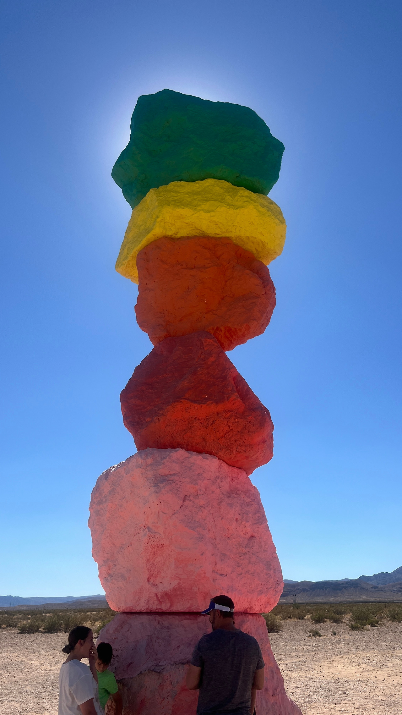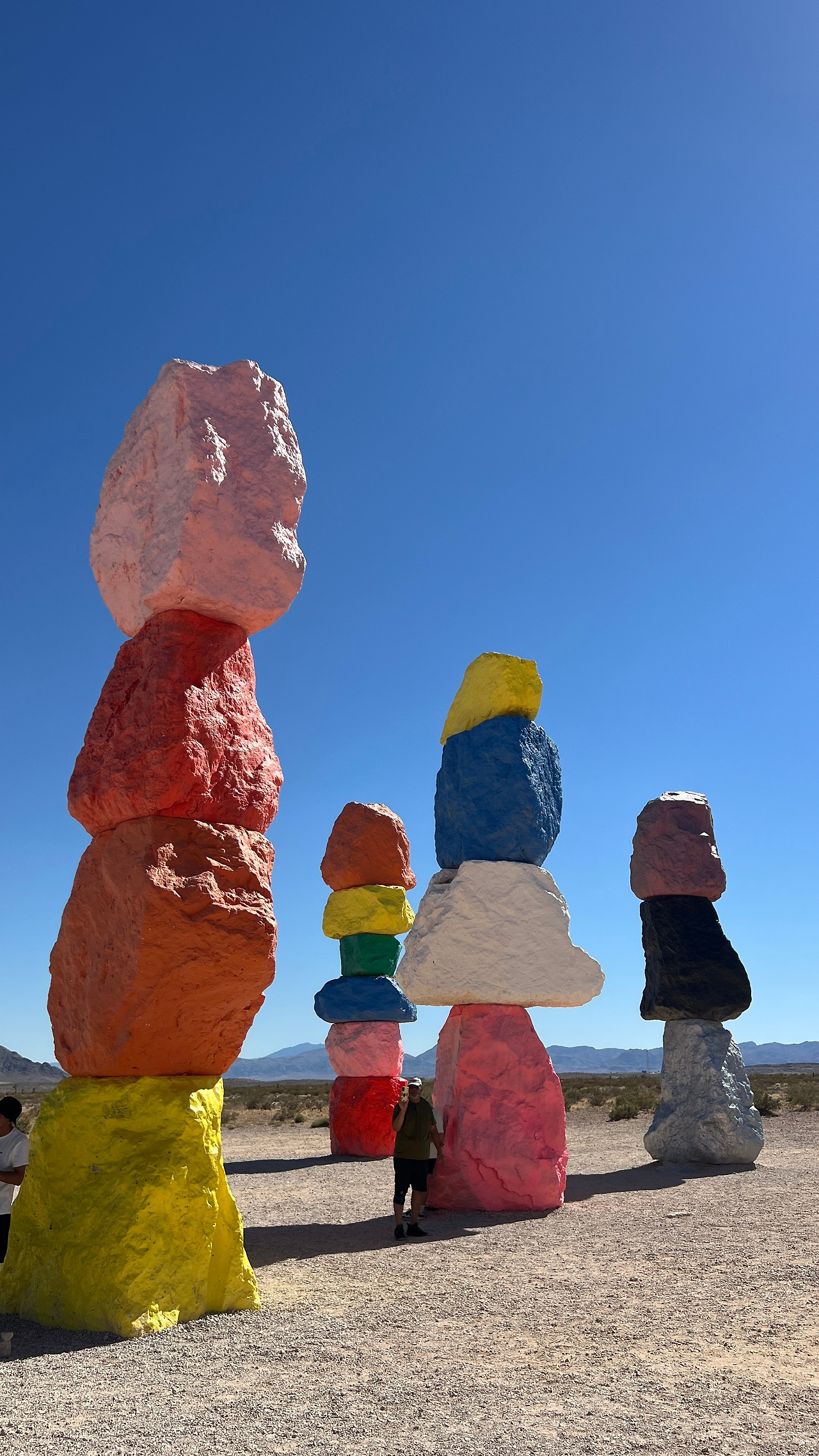 유명한 설치작품이라 이 날씨에도 관광객이 몇 보였다. 인기가 많아서 전시기간이 2027년까지 연장되었다고 한다. 형형색색의 커다란 바위들을 쌓아 일곱 개의 기둥처럼 보이는데 자연과 인공의 대비를 통해 도시와 사막의 경계를 표현한 작품이라고 한다.