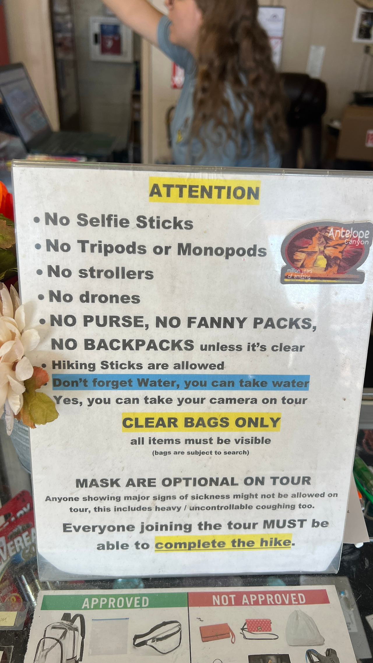 신혼여행 때 라스베이거스에서 출발하여 그랜드캐년을 보고 홀스슈밴드까지 볼 수 있었다. 엔텔로프 캐년은 홀스슈 밴드에서 차로 10분밖에 걸리지 않는데 입구까지 갔다가 가이드가 필요한지, 영업시간이 언제까지인지 미리 알아보고 가지 않은 탓에 보지 못했다. 드디어 모니터 보호화면에서만 봤던 앤텔로프 캐년을 보러 간다.