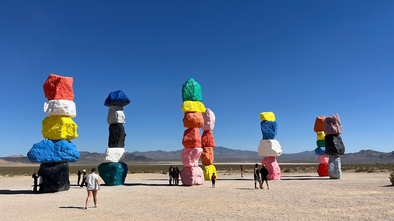 라스베이거스 중심부에서 남쪽으로 약 10마일 떨어진 사막에는 스위스 출신 아티스트 우고 론디노네(Ugo Rondinone)가 만든 대형 야외 설치 미술 작품이 있다. 사막 한가운데 있는 주차장에 도착했는데 차 밖으로 내릴 엄두가 나지 않는다. 잠시 망설이다가 빨리 사진만 찍고 오기로 하고 밖으로 나갔는데 마치 건식사우나 같다.