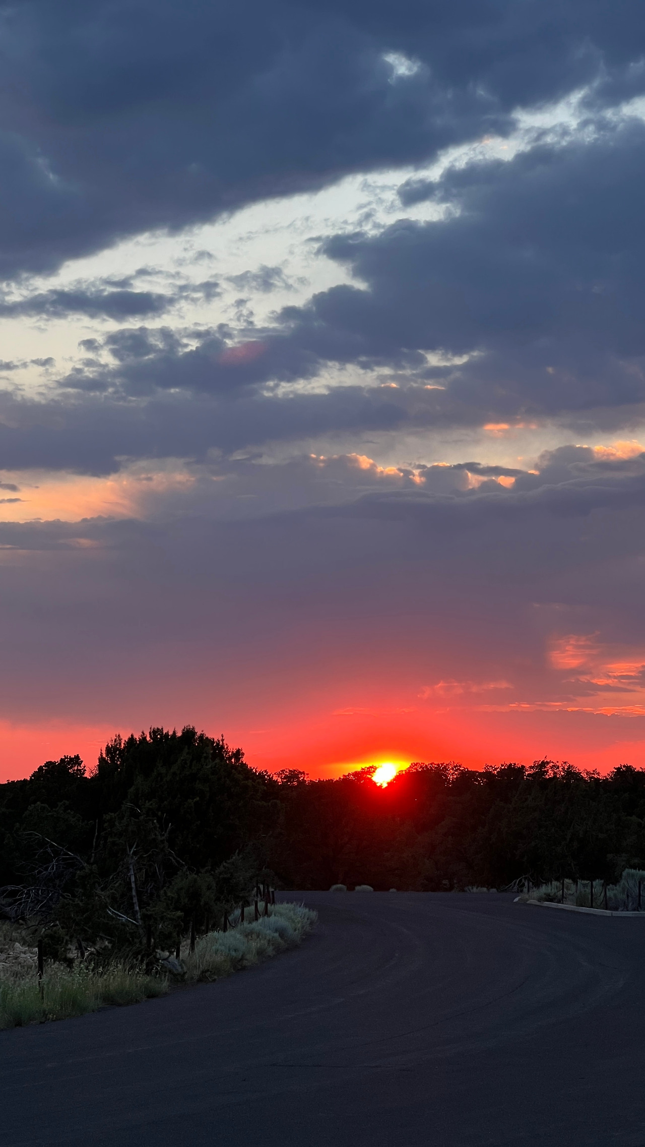 아침에 체크아웃을 하고 RV카 교체를 위해 반대방향인 피닉스를 갔다가 다시 그랜드 캐년으로 향했다. 사우스림 국립공원 입구에 도착한 시간이 오후 7시 반이었는데 빨간 해가 막 넘어가고 있었다.