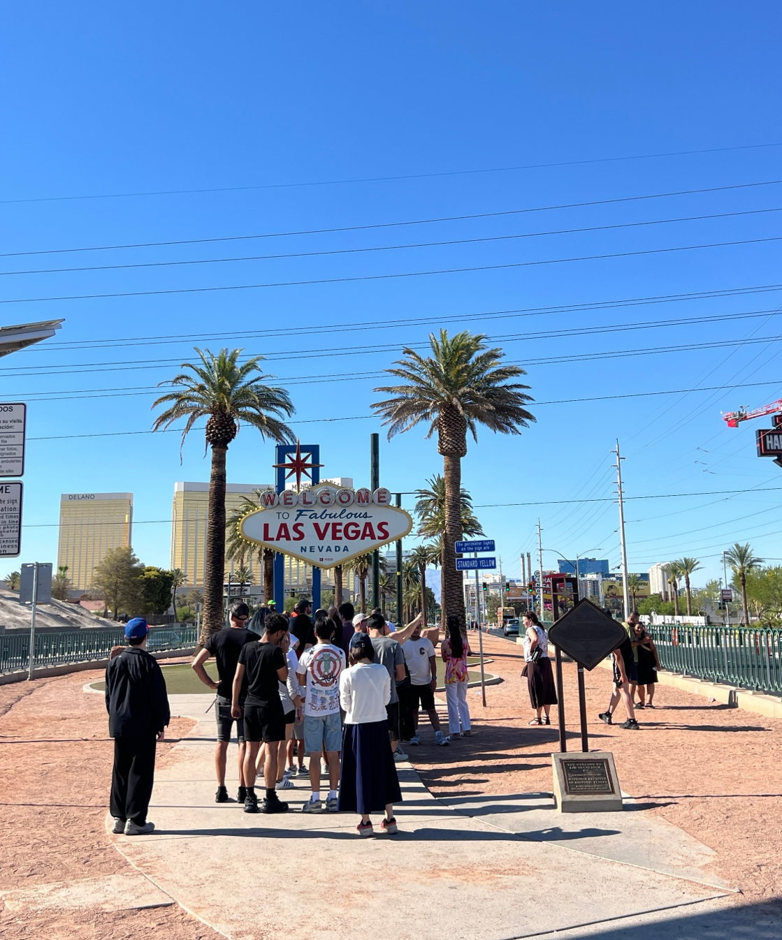 라스베이거스에 진입하는 여행자들을 위한 도시 랜드마크이다. 유명세에 비해 주차장이 협소했다. 1959년에 만들어진 이 사인은 높이 7.6미터에 다이아몬드 형태이다. 당시 작가가 저작권 없이 제작비만 받았다는데 현재는 각종 기념품에 새겨져 라스베이거스를 대표하는 이미지가 되었다. 오후 다섯 시쯤 갔는데 도저히 저 줄을 기다릴 수 없어서 사진에 다른 사람들이 나오더라도 옆에서 후다닥 찍고 숙소로 복귀했다.