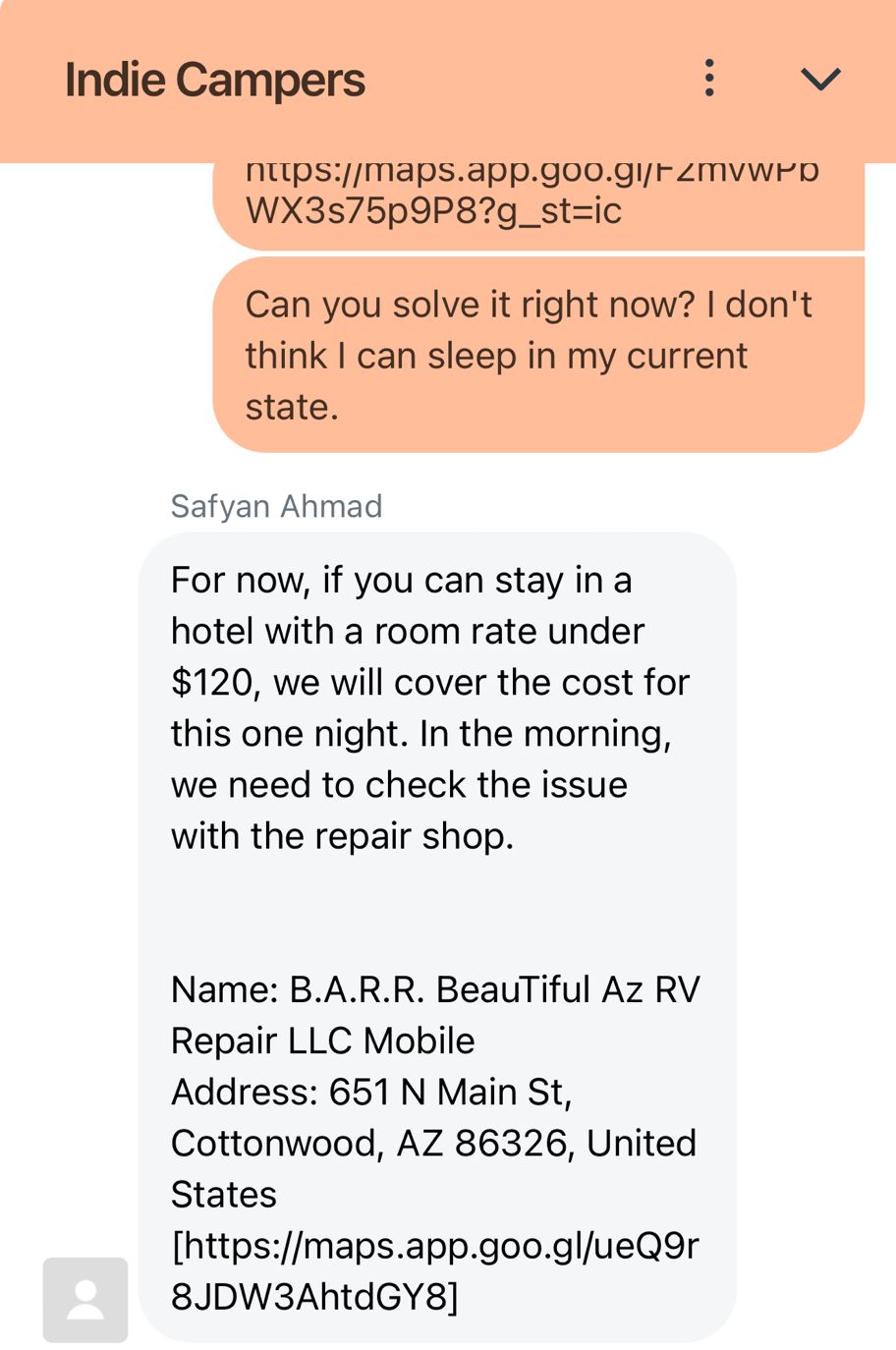 첫날 부푼 맘을 안고 세도나 캠핑장에 저녁 늦게 도착해서 에어컨을 켰다. 아무리 기다려도 시원해지기는커녕 그냥 미지근한 바람만 나왔다. 밤 11시가 넘어가는데 기온은 38도다. 에어컨 없이 잠을 청했지만 불가마에서 자는 거 같다. 급하게 인디캠퍼스 고객센터에 문의를 했다. 당일 숙박비 지원을 해줄 테니 일단 숙소를 찾아보고 내일 근처에 가까운 수리점을 알려줄 테니 가보라고 한다.