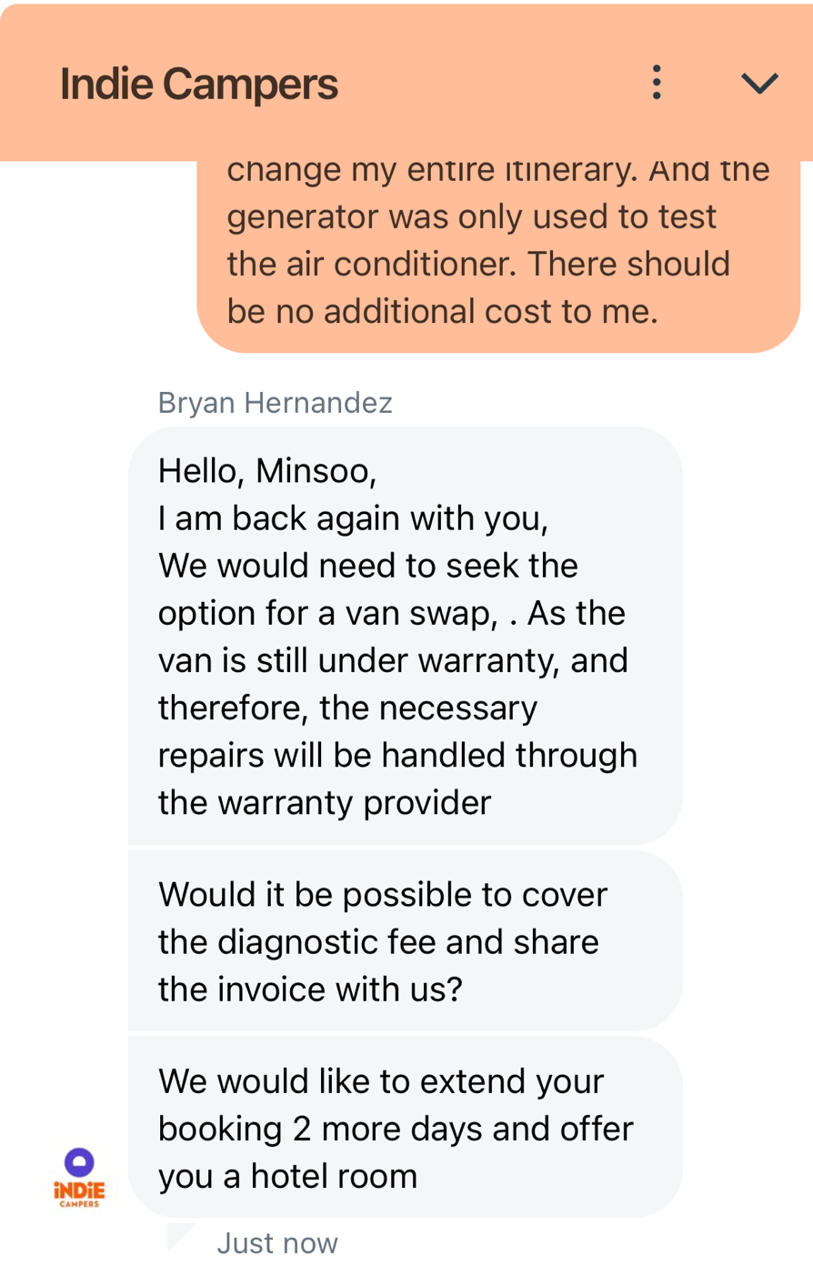 다음날 그들이 알려준 수리점에 가서 에어컨이 완전히 고장 나서 교체해야 한다는 진단을 받았다. 인디캠퍼스에 이 사실과 함께 견적서를 보냈더니 한참 후 다시 연락이 왔다. 자기들 A/S기간이 남아서 다른 업체에서 교체는 불가하단다. 차를 가지고 다시 라스베이거스로 오면 다른 차로 바꿔준다고 했다.