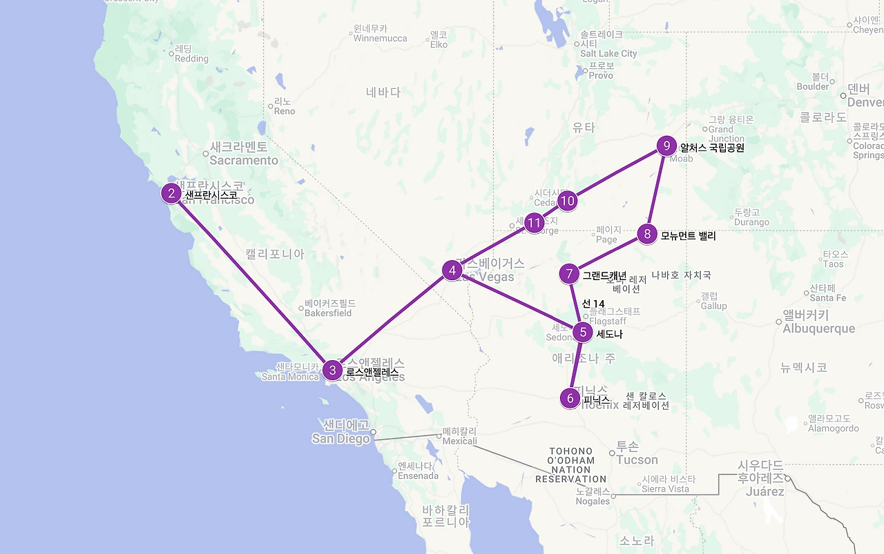 한여름은 피하라는 글들을 봤는데 피할 수가 없었다. 진짜 말 그대로 미친 더위를 온몸으로 느끼며 라스베이거스를 기점으로 반시계방향으로 돌았다.