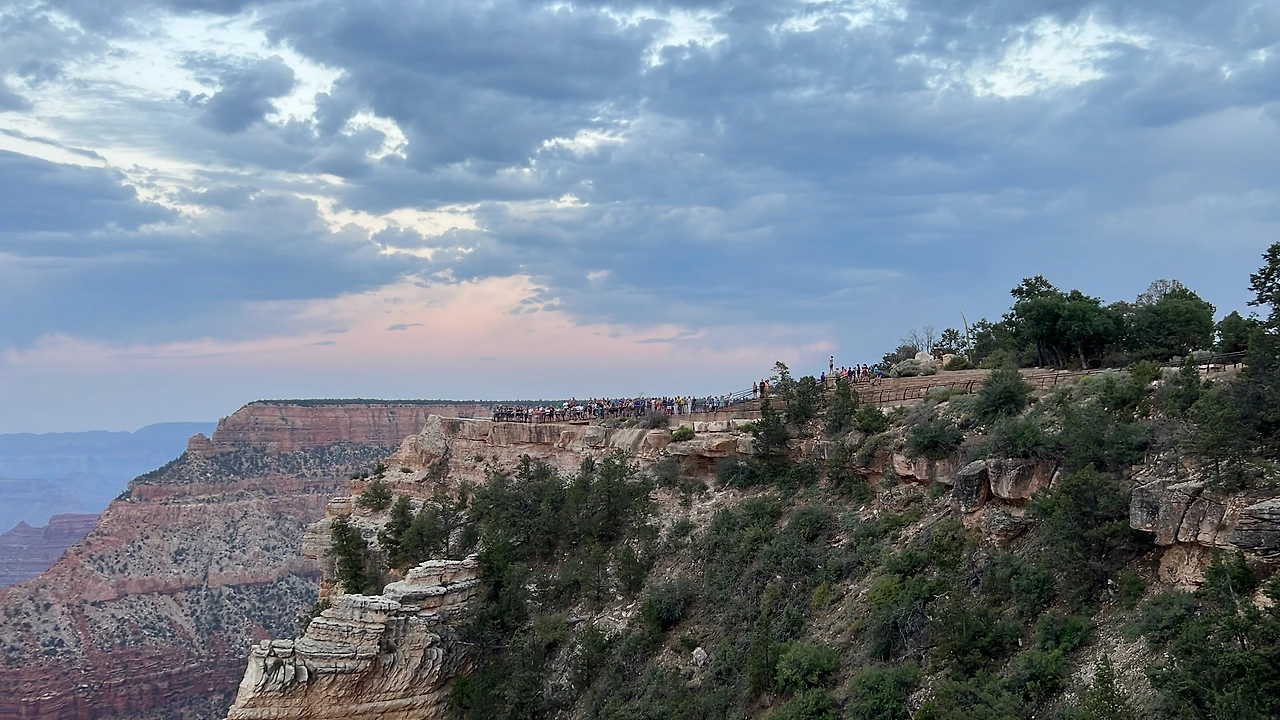 캠핑장 체크인전에 국립공원 방문자 센터 바로 옆 Mather Point(마더 포인트)로 뒤늦은 노을을 보러 갔다. 아직 사람들이 많았다. 8년 전에는 새벽에 일출을 보러 왔었는데 감회가 새로웠다.