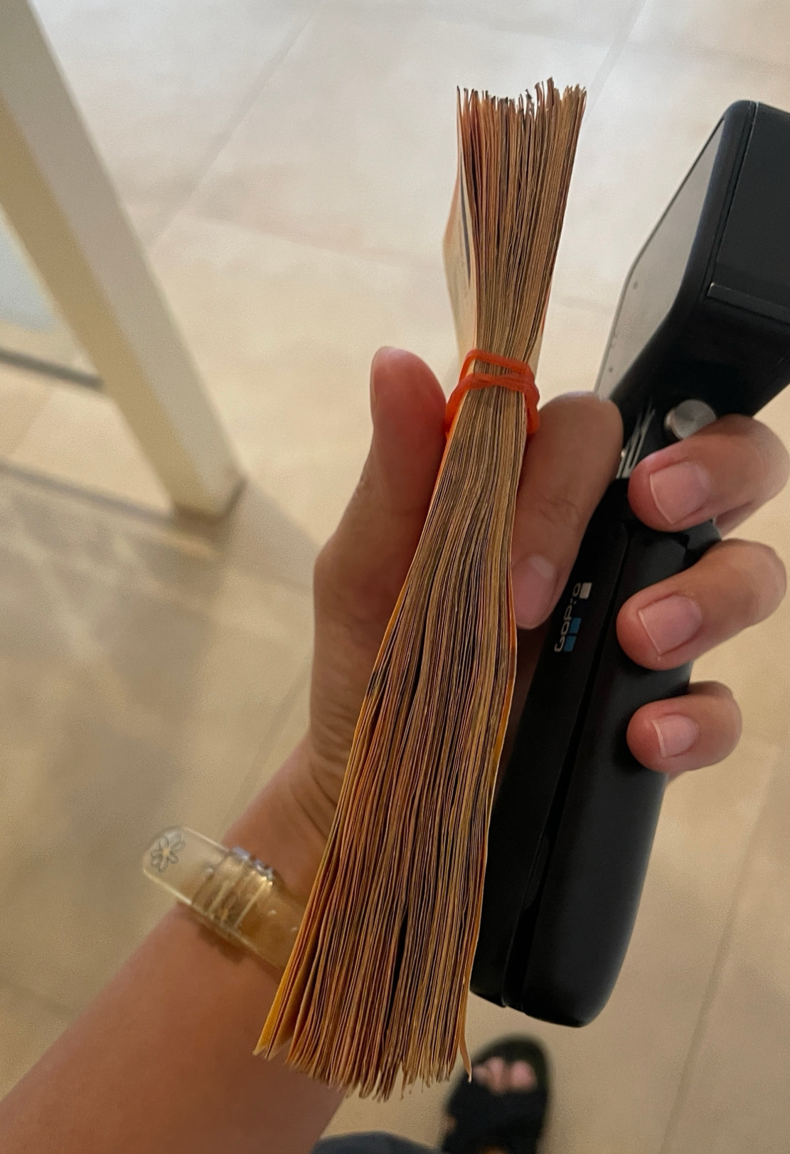 100달러짜리 지폐 딱 한 장을 아르헨티나 페소로 환전하면 뭉칫돈을 받을 수 있다. 많이 사용하는 지폐 중 가장 큰 1,000페소로 100장이 조금 안 됐던 걸로 기억한다. 환전소에서 2023년에 발행된 2,000페소 지폐는 바꿔 줄 수 없다고 했다.