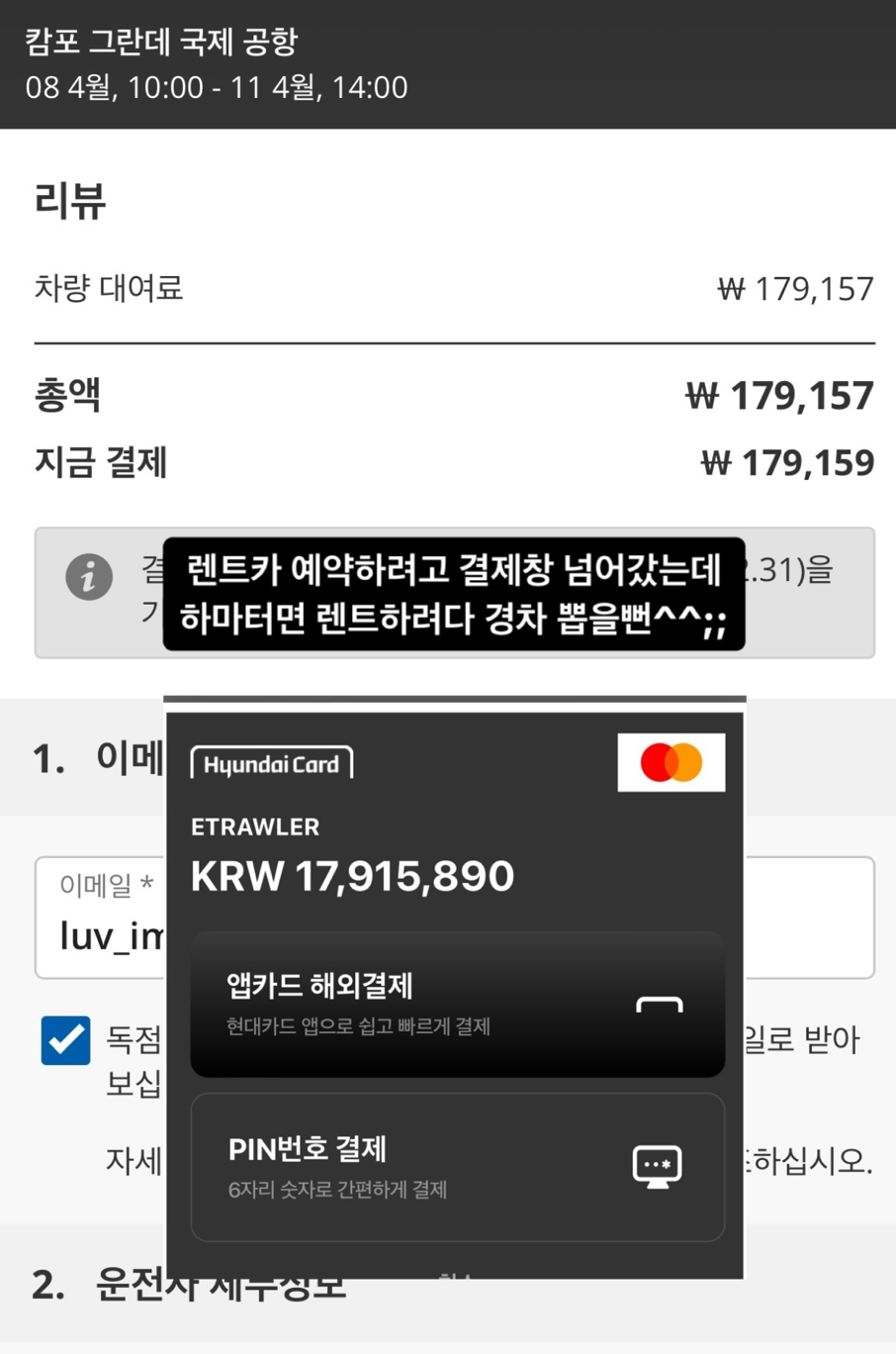 분명 179,157원인데 카드 결제창에는 17,915,890원을 결제하라고 한다. 습관처럼 다음을 눌렀다가는 골치 아파진다. 두 자리가 더 길어져서 티가 났기에 망정이지 한자리만 늘어났으면 모르고 지나쳤을지도 모르겠다.