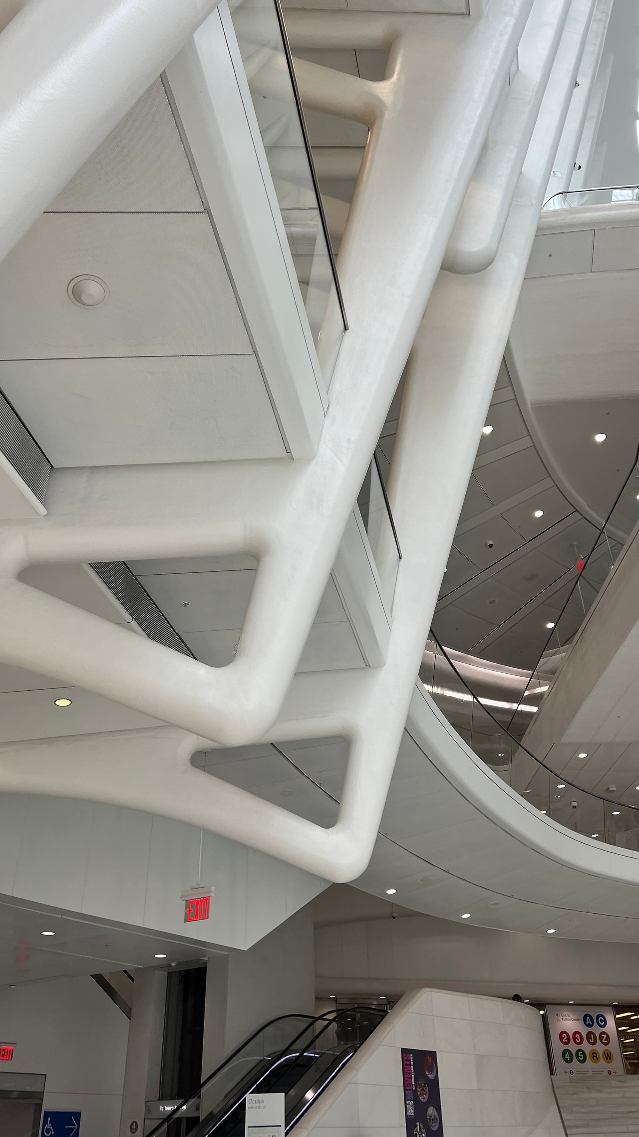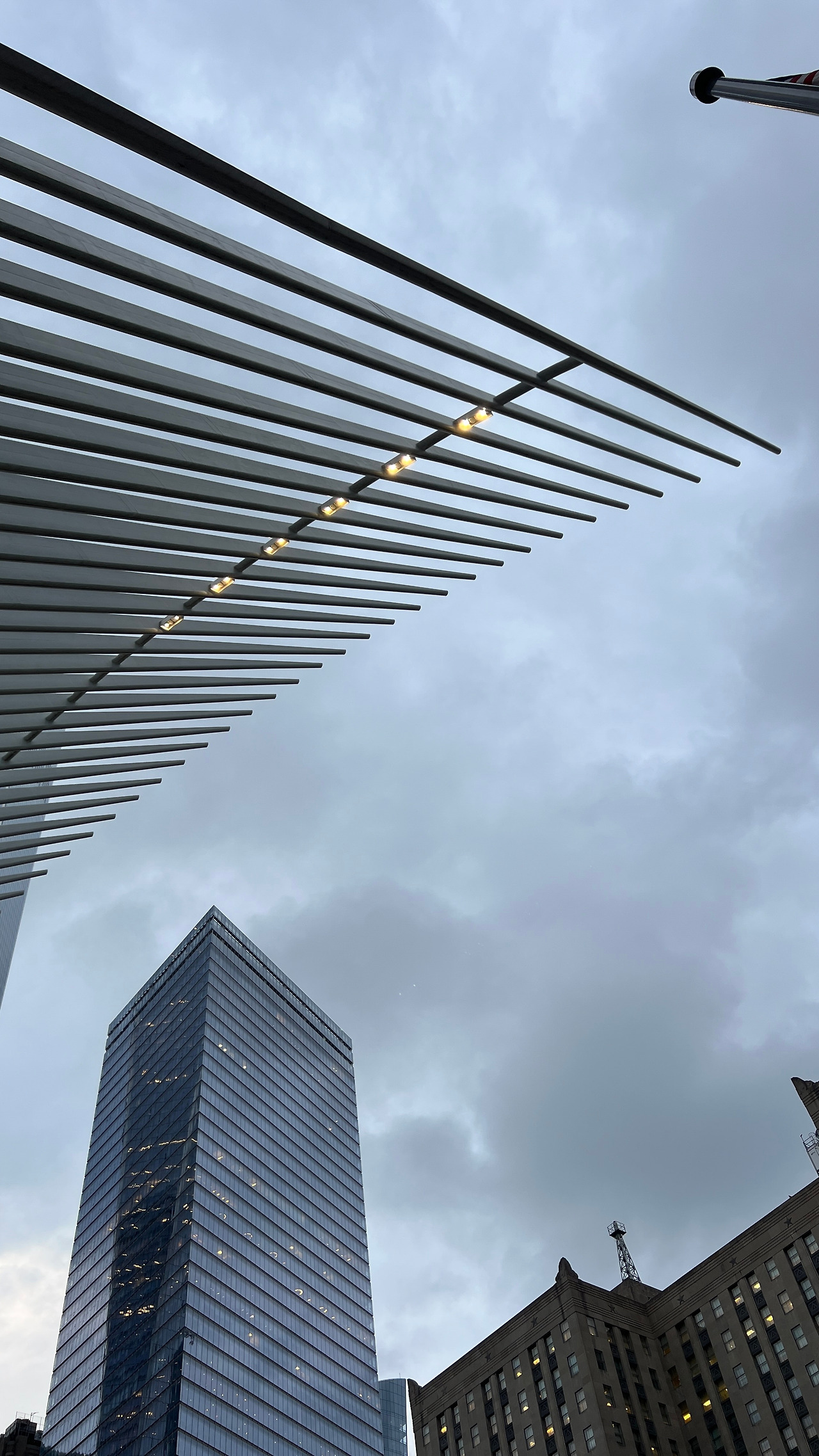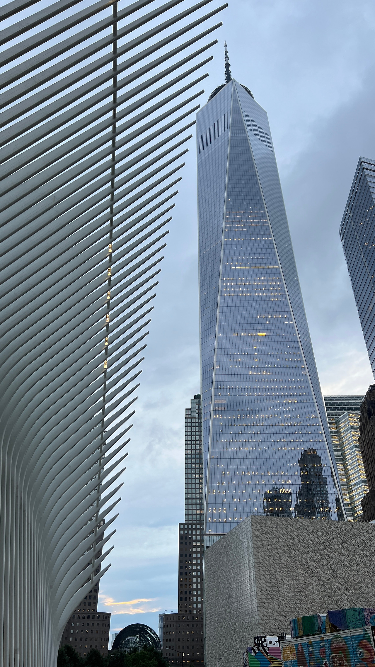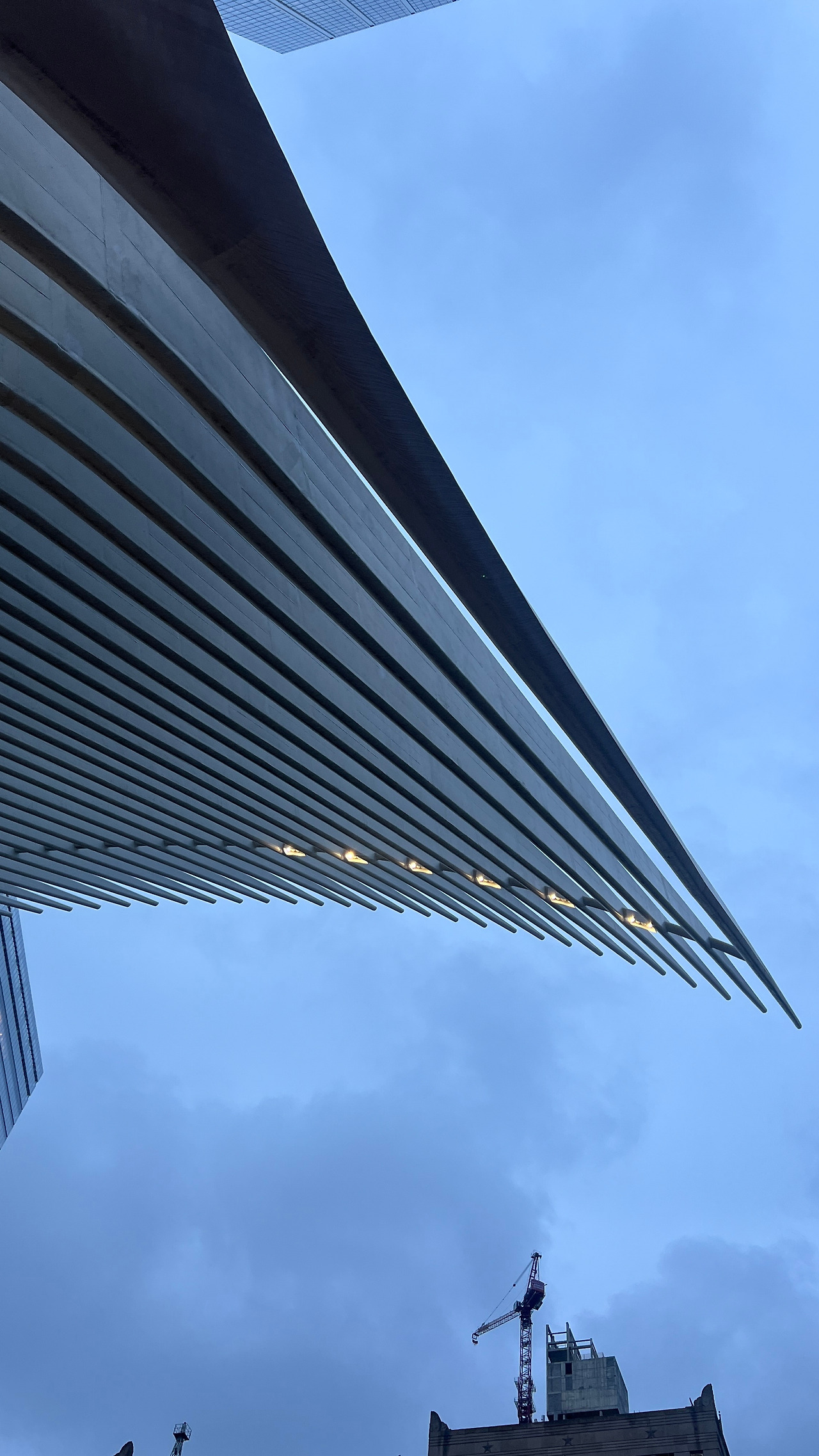 건물 외형이 하얀 새가 날개를 펼치며 날아오르는 모습을 형상화했다고 한다. 9·11 테러 당시 무너진 구 세계무역센터 자리와 연결되는 공간이라, “재탄생”과 “희망”을 상징하는 곳으로, 뉴저지 PATH 열차, 뉴욕 지하철 여러 노선과 연결되어 있고 웨스트필드 월드 트레이드 센터 쇼핑몰(Westfield WTC Mall)이 들어서 있어, 명품 브랜드와 레스토랑이 입점해 있다. 단순한 교통 시설을 넘어서 관광 명소 + 쇼핑 공간 역할을 동시에 하고 있었다.
