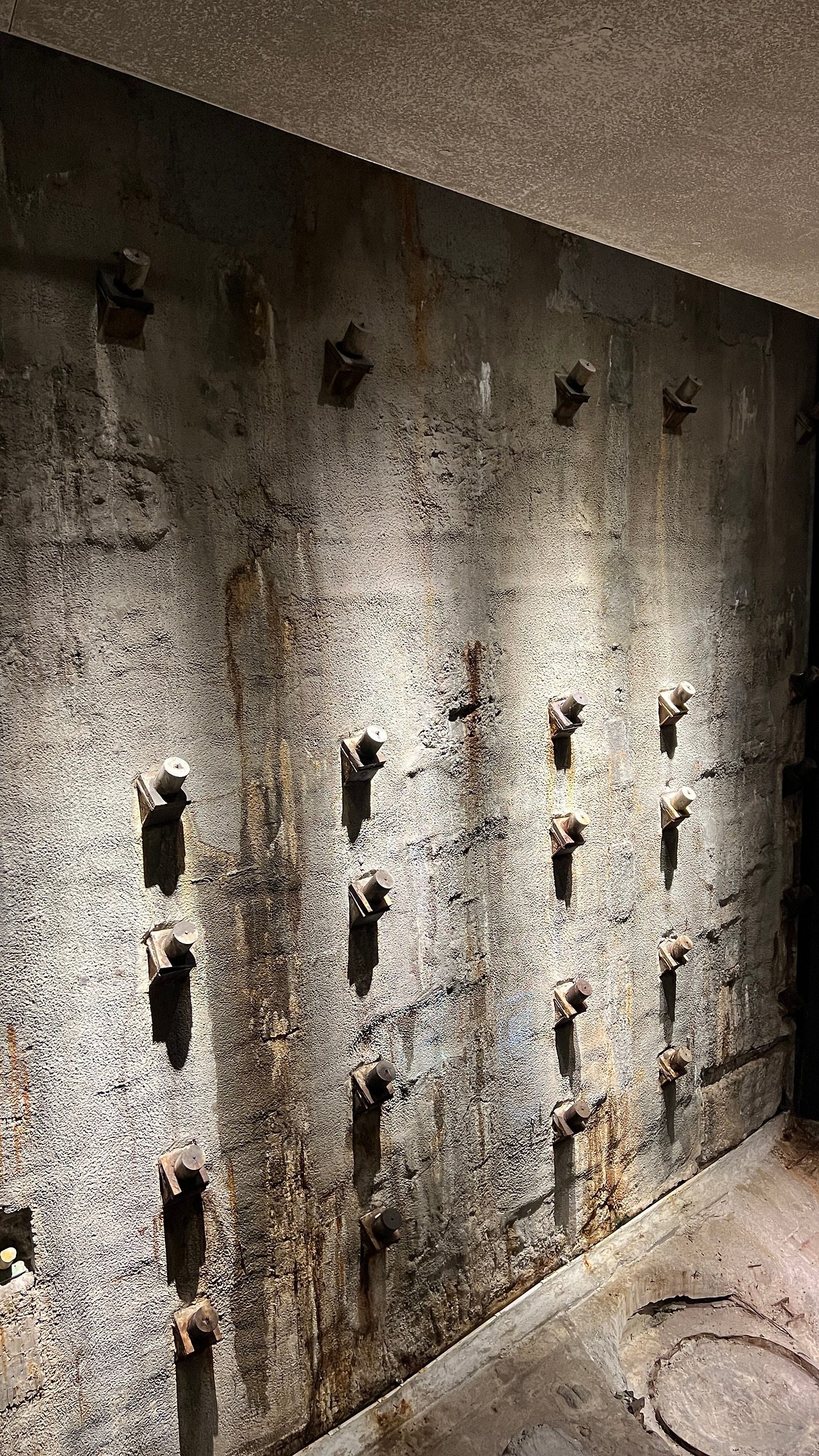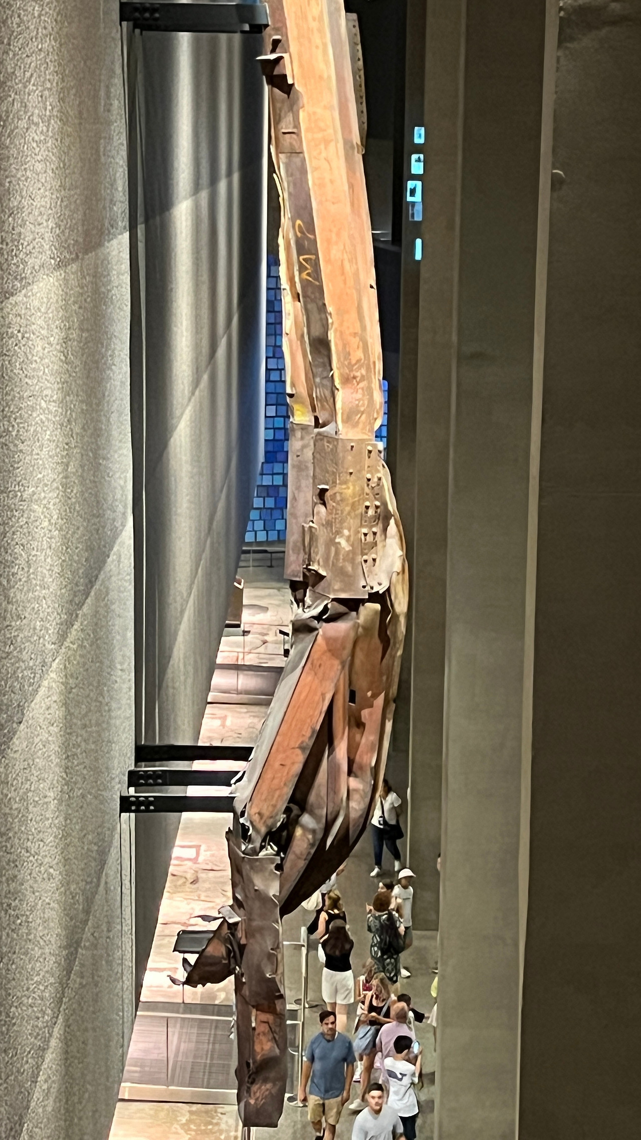 매체에서 많이 봤었기 때문에 감정의 소모가 덜 할 줄 알았는데 입구에 들어서면서부터 기존 세계무역센터의 잔해물들을 보자 안 그래도 무거웠던 마음이 더 가라앉았다. 특별한 안내도 없었고 누가 지시하지도 않았지만 실내 분위기가 엄숙하다.