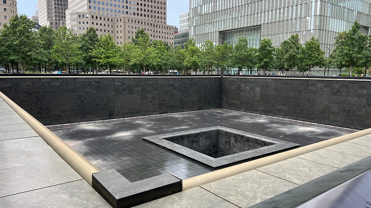 뮤지엄을 둘러보고 밖으로 나와 9·11 메모리얼 (National September 11 Memorial) 앞에 섰다. 테러 이후 두 번의 공모전을 통해서 새로운 세계무역센터와 바로 이 9.11 메모리얼을 새롭게 만들었다.