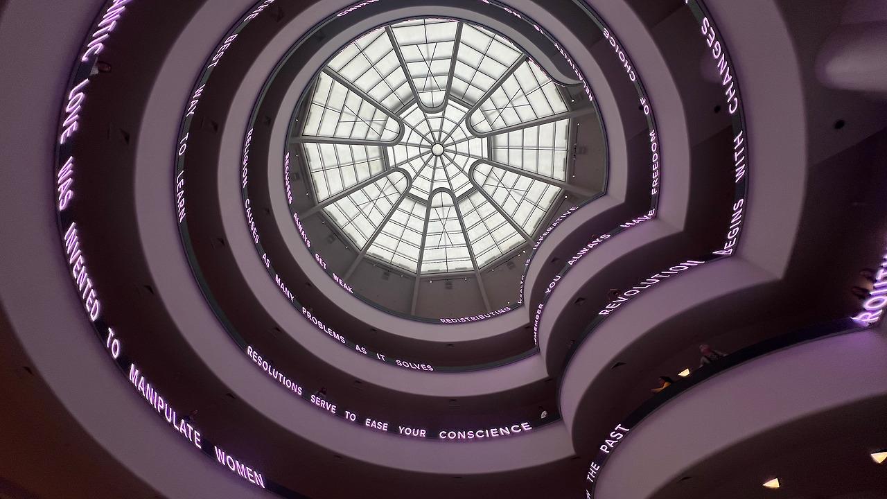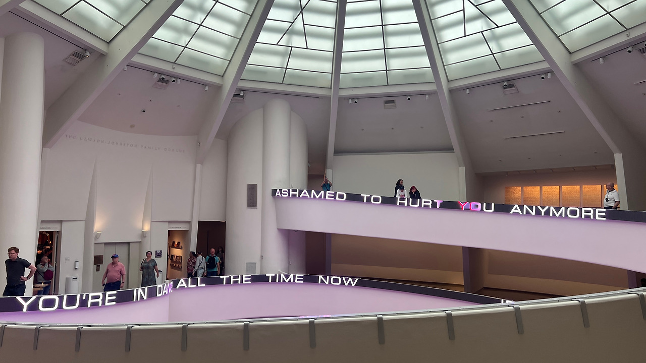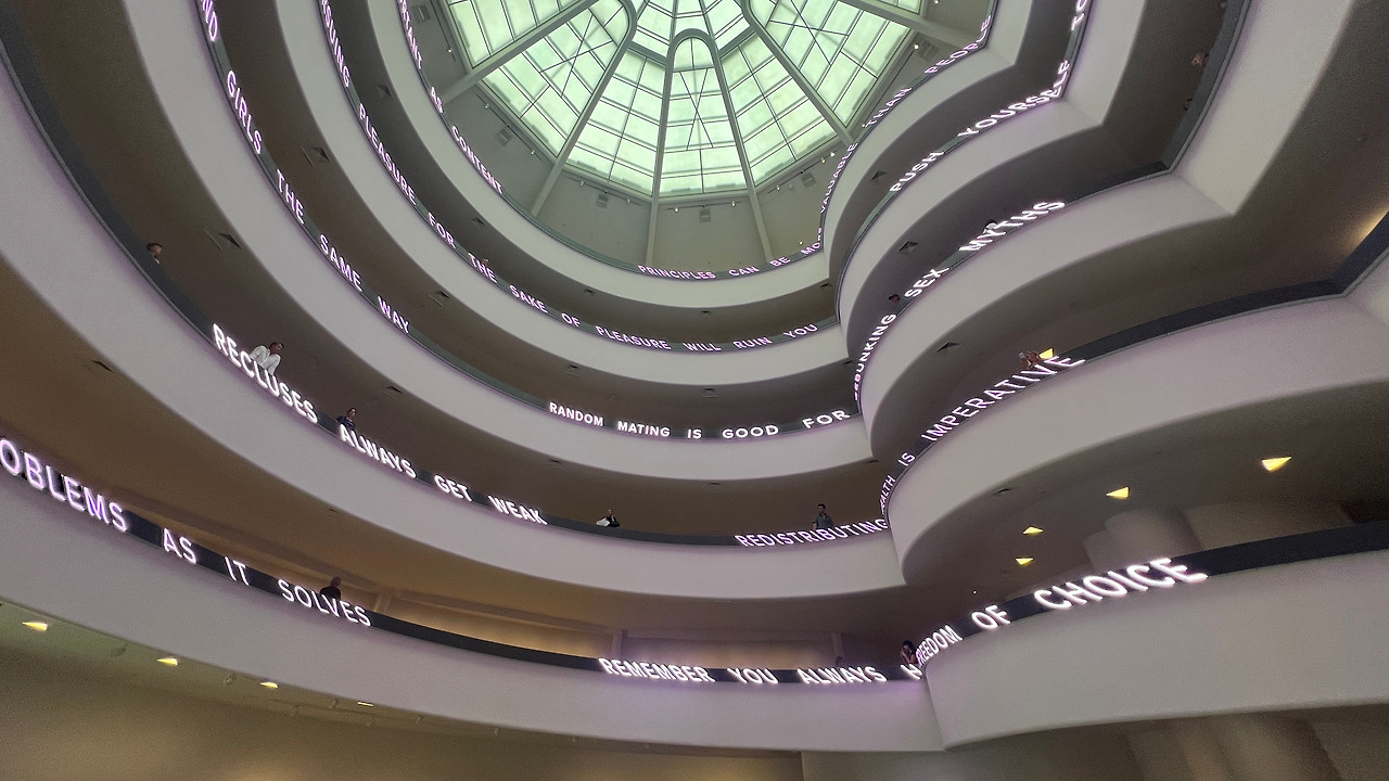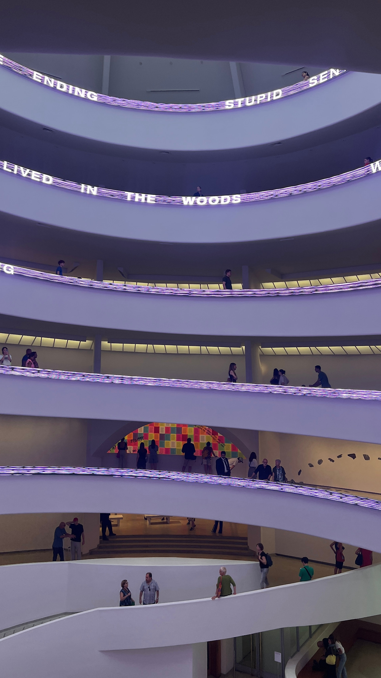 내가 알고 있던 것과 한 가지 달랐던 점은 나선형 복도를 따라 Light Line이라는 스크롤 방식의 LED 텍스트를 띄우는 설치미술이 있었다는 점이다. 사진마다 눈에 띄는 텍스트들이 신경 쓰인다. 상설전시는 아니라서 올해 9월 29일까지만 전시한다고 한다. 본래의 모습을 남기고 싶었는데 아쉬웠다.