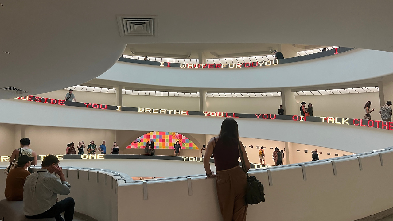 1959년에 완공된 구겐하임 미술관은 건물 자체가 하나의 거대한 예술적 체험 장치로 만들어져 있었다. 일반적인 직선계단의 형태가 아닌 삼각형 돌음 계단이 비상계단으로 있었고 건물의 매스형태를 따라 동그란 화장실이 있었다. 미술품들이 걸려있는 벽 쪽에는 자연광이 들어오도록 설계되어 인공조명의 사용을 최소화할 수 있었다.
