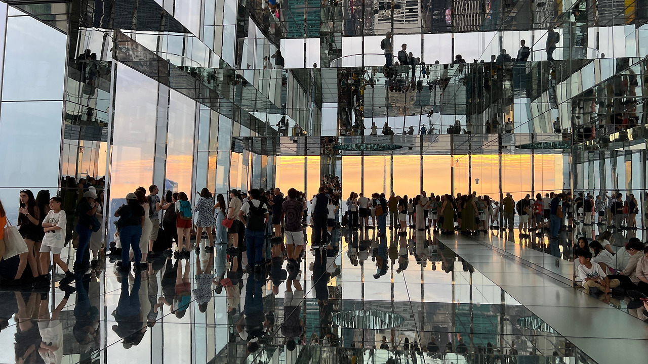 바닥과 천장이 모두 거울로 되어있어 신비로운 공간감이 느껴질 수 있도록 되어있다. 91층에는 세계적 아티스트 Kenzo Digital의 설치미술 작품 AIR가 있다. 거울과 유리로 가득한 공간이라 사방이 반사되어 마치 공중에 떠 있는 듯한 착각을 불러일으킨다. 수많은 은색 풍선 같은 오브제가 공중에 떠 있어 관람객이 직접 만지고 놀 수 있다. 단 한 가지 단점은 사람이 너무 많아서 단독 사진은 구석이 아니면 찍기 쉽지가 않다.