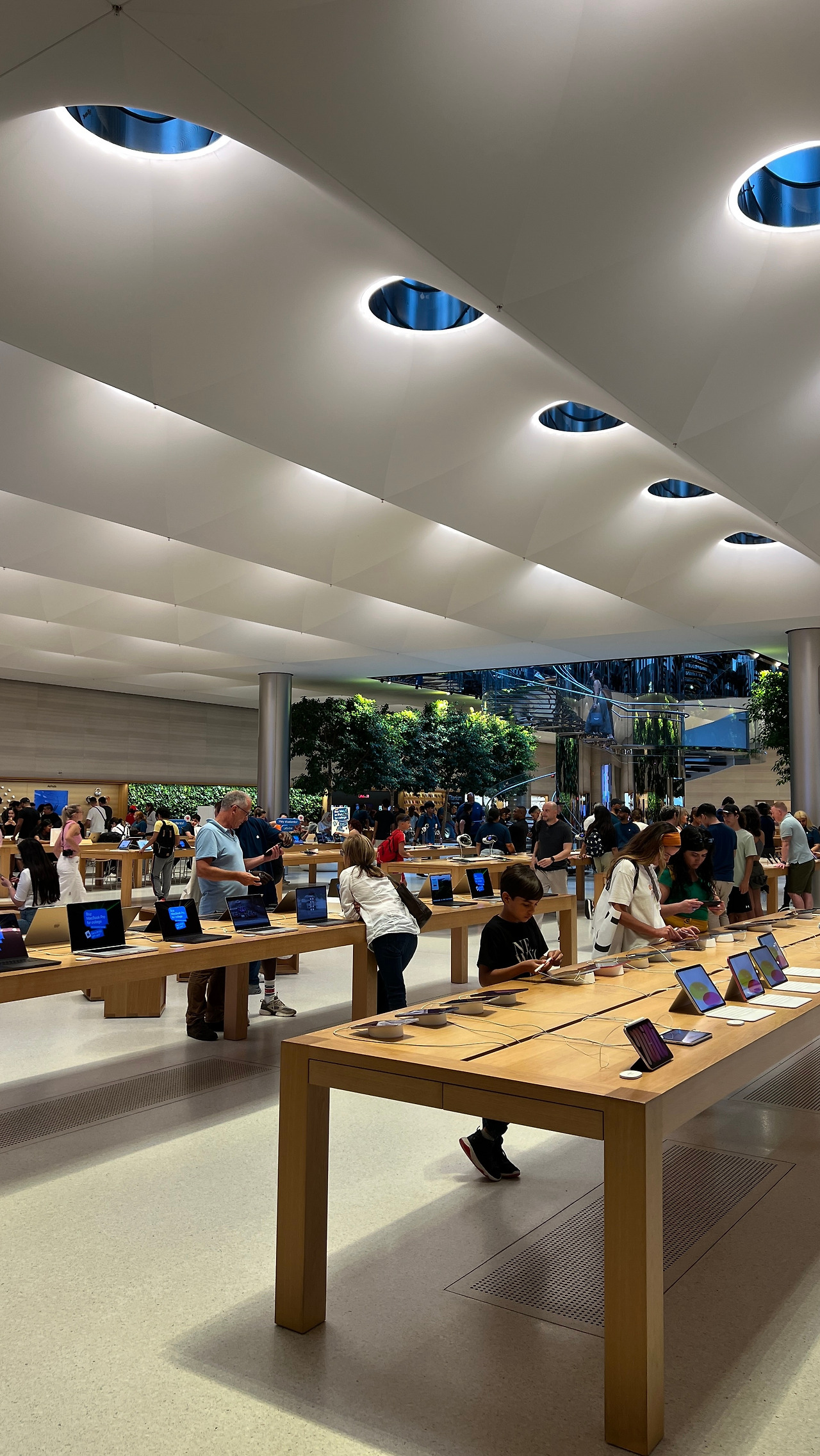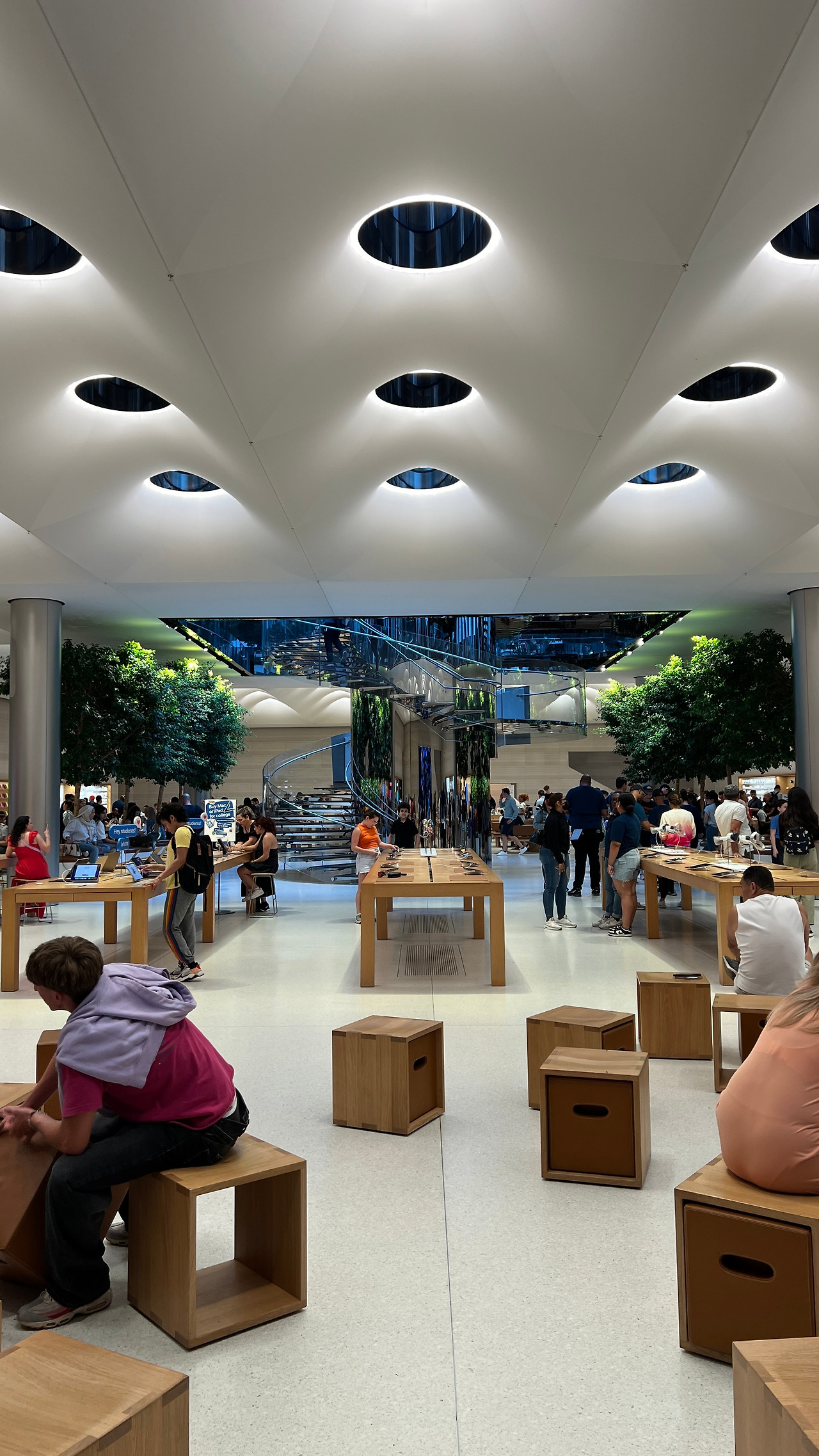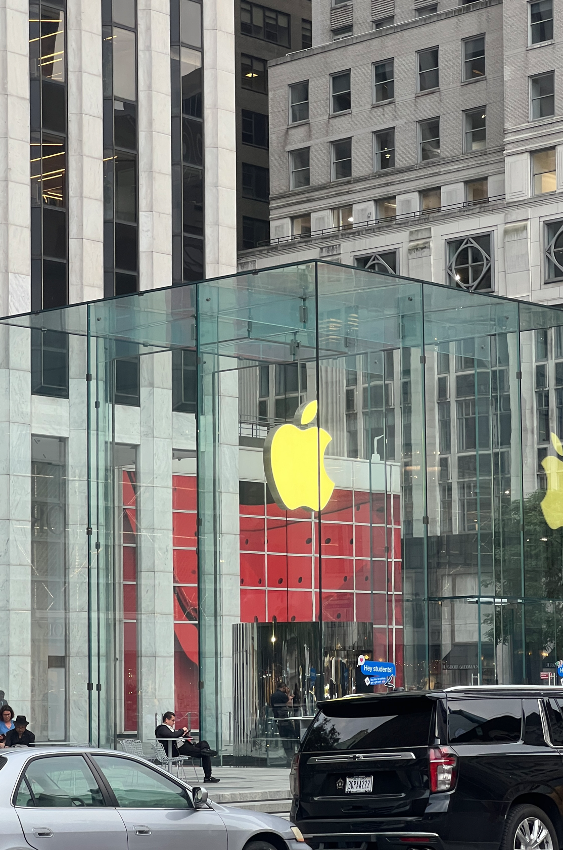 센트럴파크 남동쪽 모서리에 위치하고 있는, 영국출신 건축가 Norman Foster(포스터 + 파트너스) 설계한 애플 스토어에 왔다. 유리 큐브로 만들어진 입구가 상징적인 곳으로 지하로 내려가면 넓은 체험 공간이 있다. 단순한 매장이 아니라, 뉴욕 여행 필수 코스 중 하나로 꼽히는 장소가 되었다고 한다.