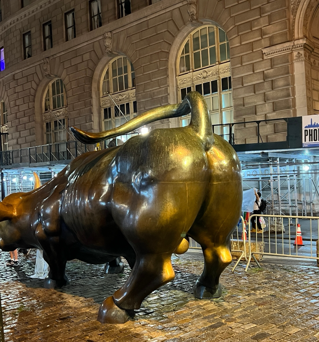1987년 뉴욕 증시 대폭락(Black Monday) 이후, 조각가가 미국 경제의 회복력과 힘을 상징하기 위해 제작했다고 한다.