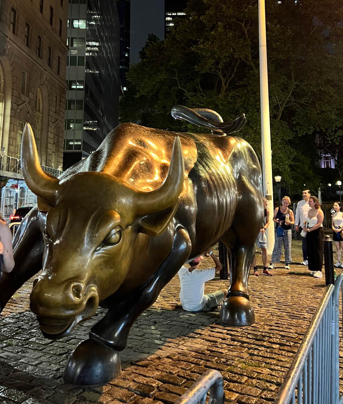 록펠러 센터 근처에 있는 해리포터 기념품 샵을 잠시 들러서 구경하고 다시 오큘러스로 향했다. 아까 낮에 맥북을 찾으러 갔는데 문제가 생겨 저녁에 다시 가기로 했다. 덕분에 오큘러스 야경도 보고 럭키비키시티포키였다. 이제 오늘 스케줄을 마무리하고 숙소로 돌아갈까 했지만 오늘이 아니면 돌진하는 황소를 볼 수 없을 거 같았다. 힘들게 겨우겨우 발걸음을 옮겨 비 오는 월스트릿을 걸어 황소 동상 앞으로 갔다.