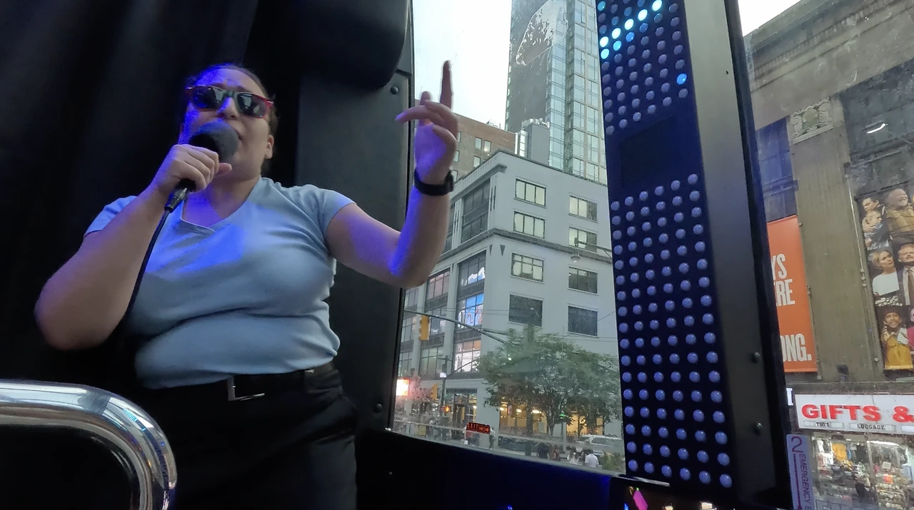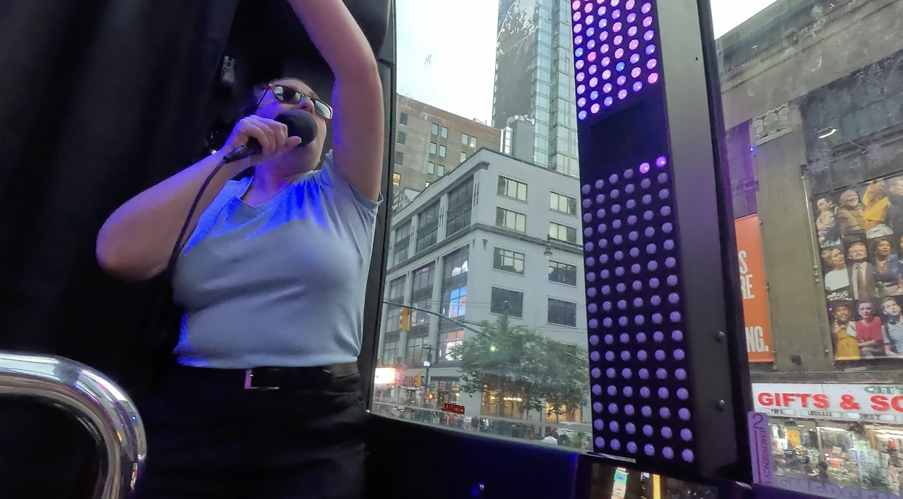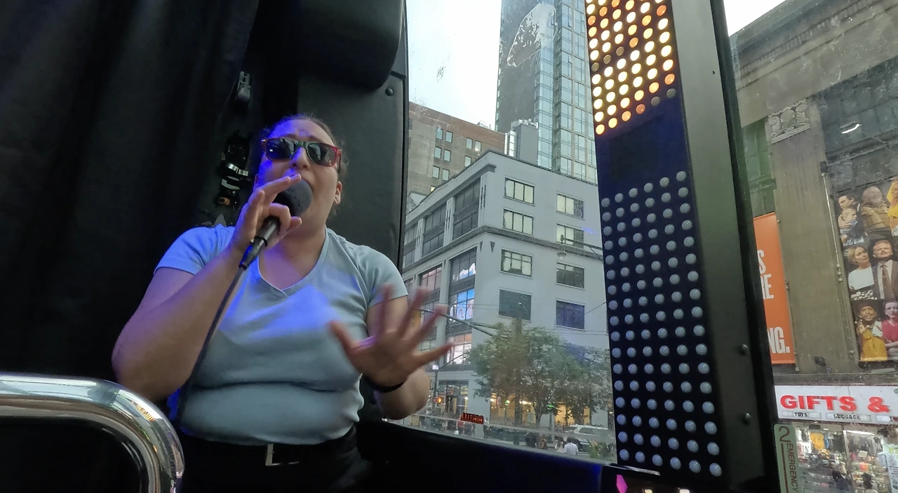 일반 관광버스와 달리 좌석이 모두 오른쪽을 향해 있고, 벽이 통유리 파노라마 창으로 되어 있다. 버스 자체가 무대이자 객석 같은 느낌으로 뉴욕시내 곳곳을 돌아다니며 길거리에서 펼쳐지는 즉석공연을 관람한다.