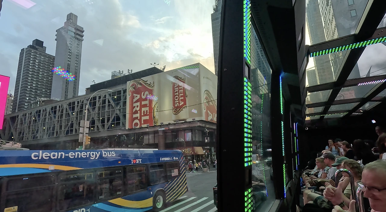 오늘 저녁에는 더 라이드라는 버스투어가 예약되어 있다. 해가 질 무렵에 센트럴 파크 남쪽의 파이브 가이즈 앞에서 출발한다. 더 라이드는 일반 시티투어 버스가 아니라 일종의 공연형 버스 투어이다.