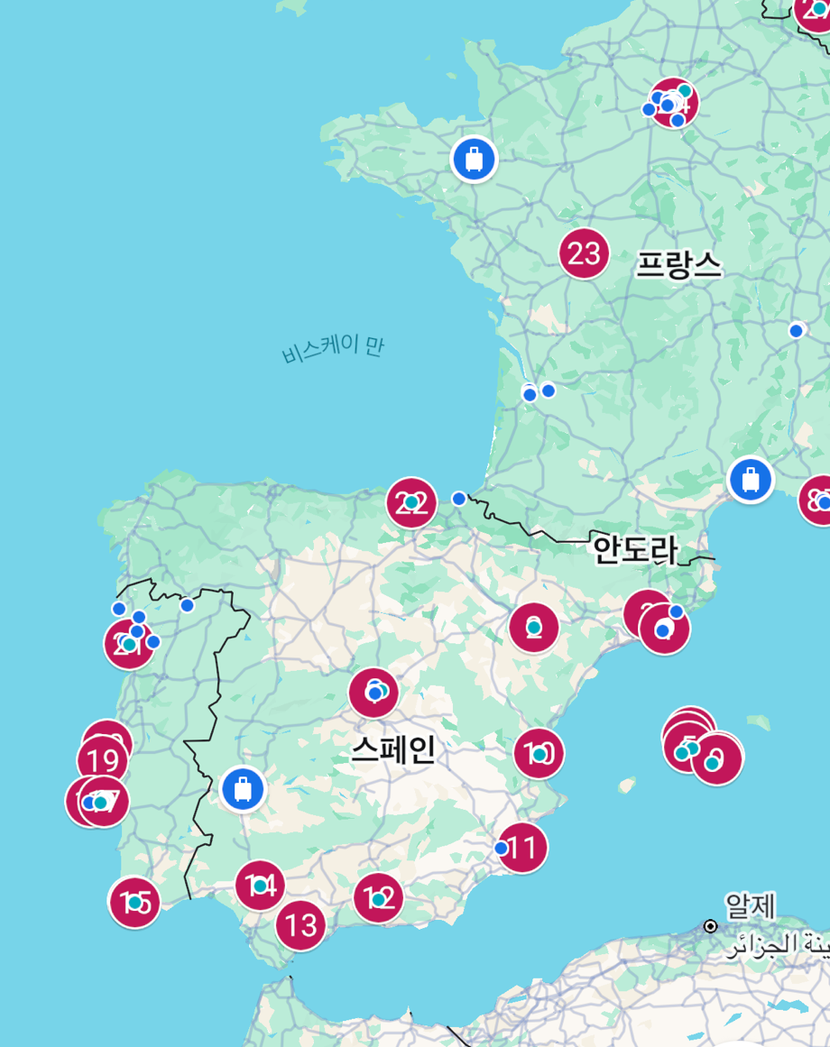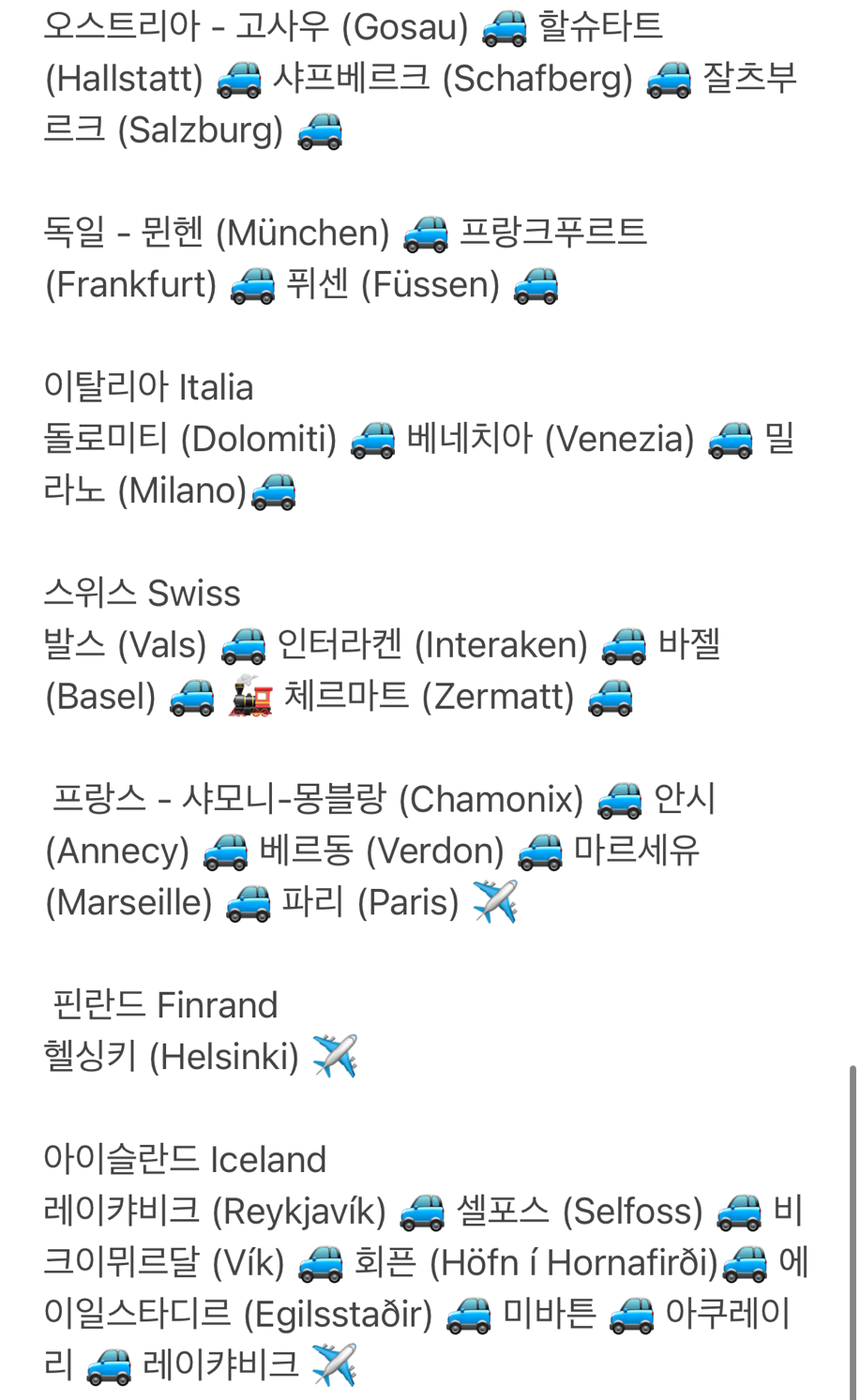 프랑스나 독일 같은 경우 땅도 넓고 유럽대륙 중앙에 있어서 한 번에 쭉 돌아보지 못하고 국경을 마주한 근처의 다른 나라들과 인근 도시들을 묶어서 여행했다.