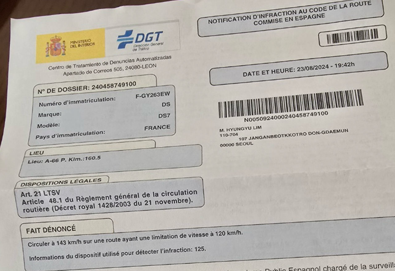 스페인에서 날아온 과태료 고지서였다. 렌터카가 아니라 임시이긴 해도 내 소유의 차량이기 때문에 나에게 청구된 거 같다. 스페인어를 몰라도 숫자만 읽었을 때 120km 도로에서 143km로 달린 거 같다. 한 번 찍힌 거 같았는데 한국집으로 고지서가 날아가는 줄은 몰랐다. 어차피 임시번호판이고 차량을 반납하고 한국으로 돌아가기 때문에 여권까지 새로 발급받으면 나에 대한 정보를 더 이상 알 수 없어서 내지 않아도 된다는 글을 봤는데 그러고 싶지 않았다. 100유로라는 큰 금액이었는데 기한 내에 납부하면 50%를 감면해 준다. 같이 받은 다른 종이에 납부방법도 쓰여 있어서 인터넷으로 납부했다.