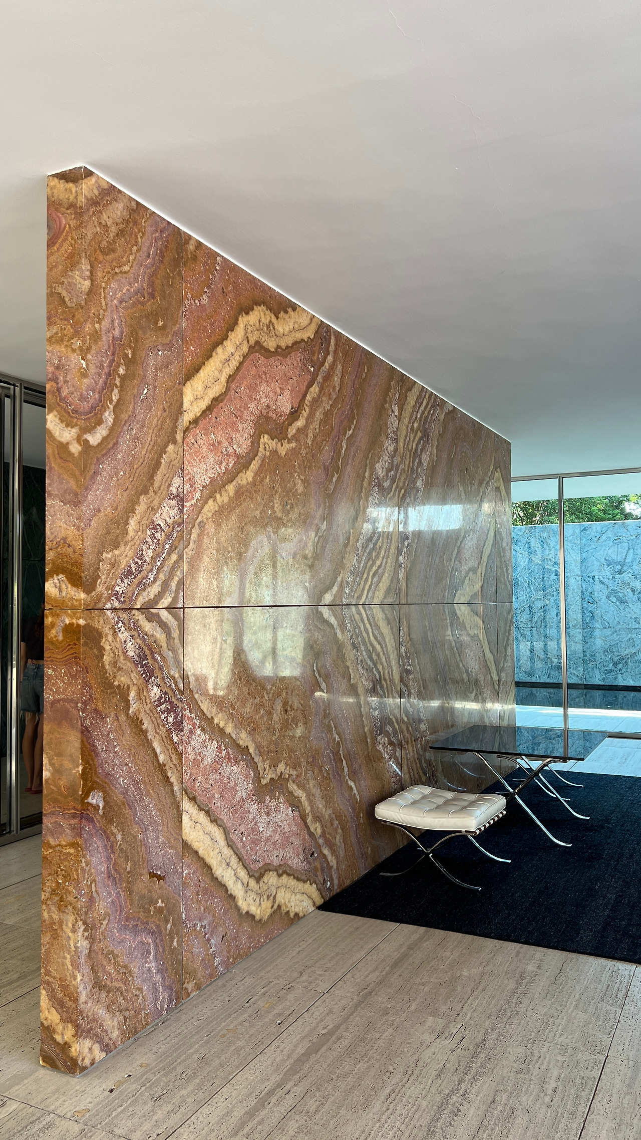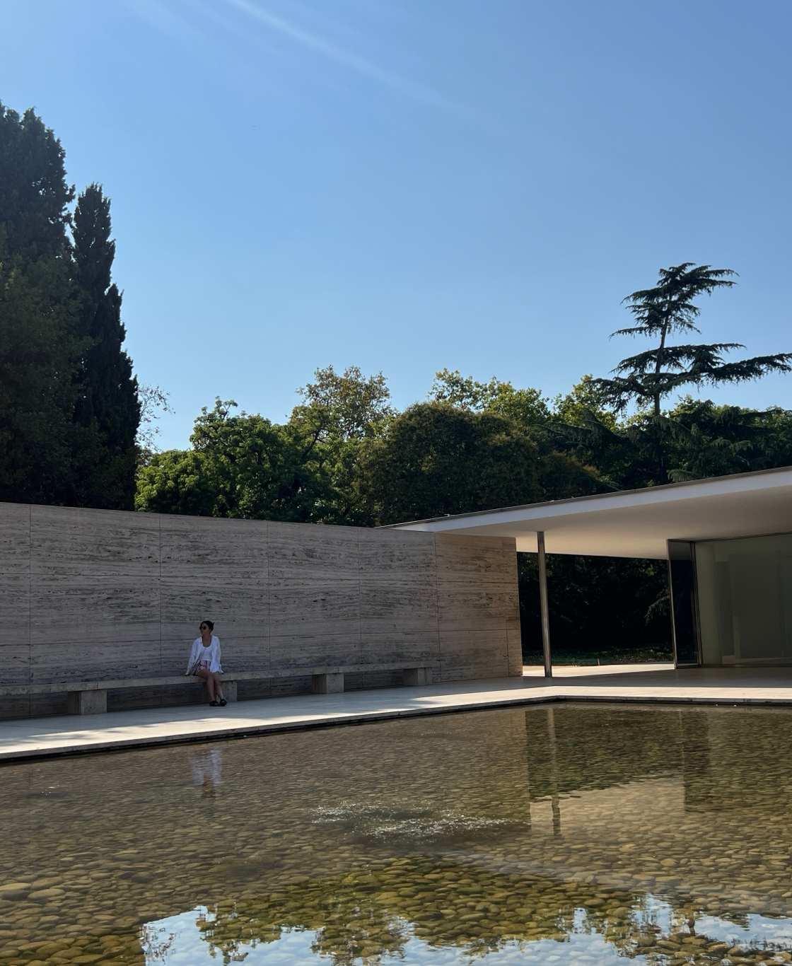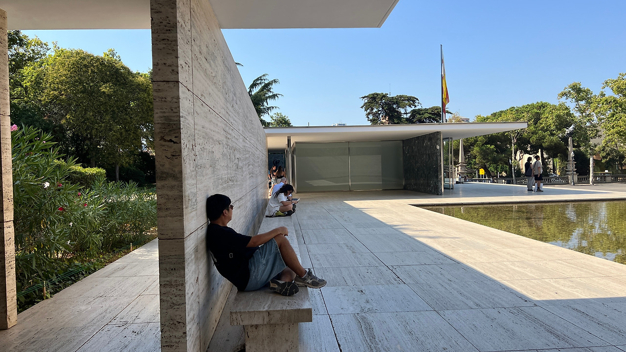 1929년 바르셀로나 국제박람회(Expo) 독일관으로 설계된 파빌리온을 보러 왔다. 독일의 근대적, 진보적 이미지를 전 세계에 과시하기 위한 전시용 국가관으로 건축계의 또 한 명의 거장 루트비히 미스 반 데어 로에(Ludwig Mies van der Rohe)의 작품이다.