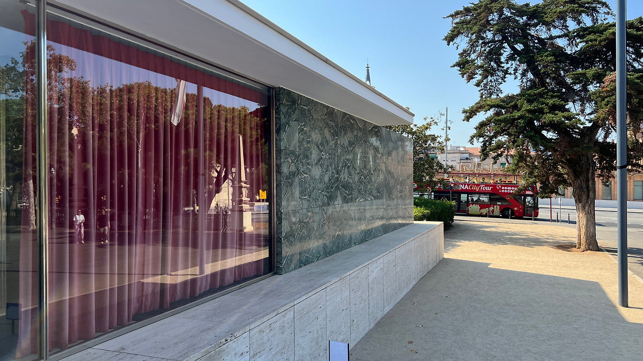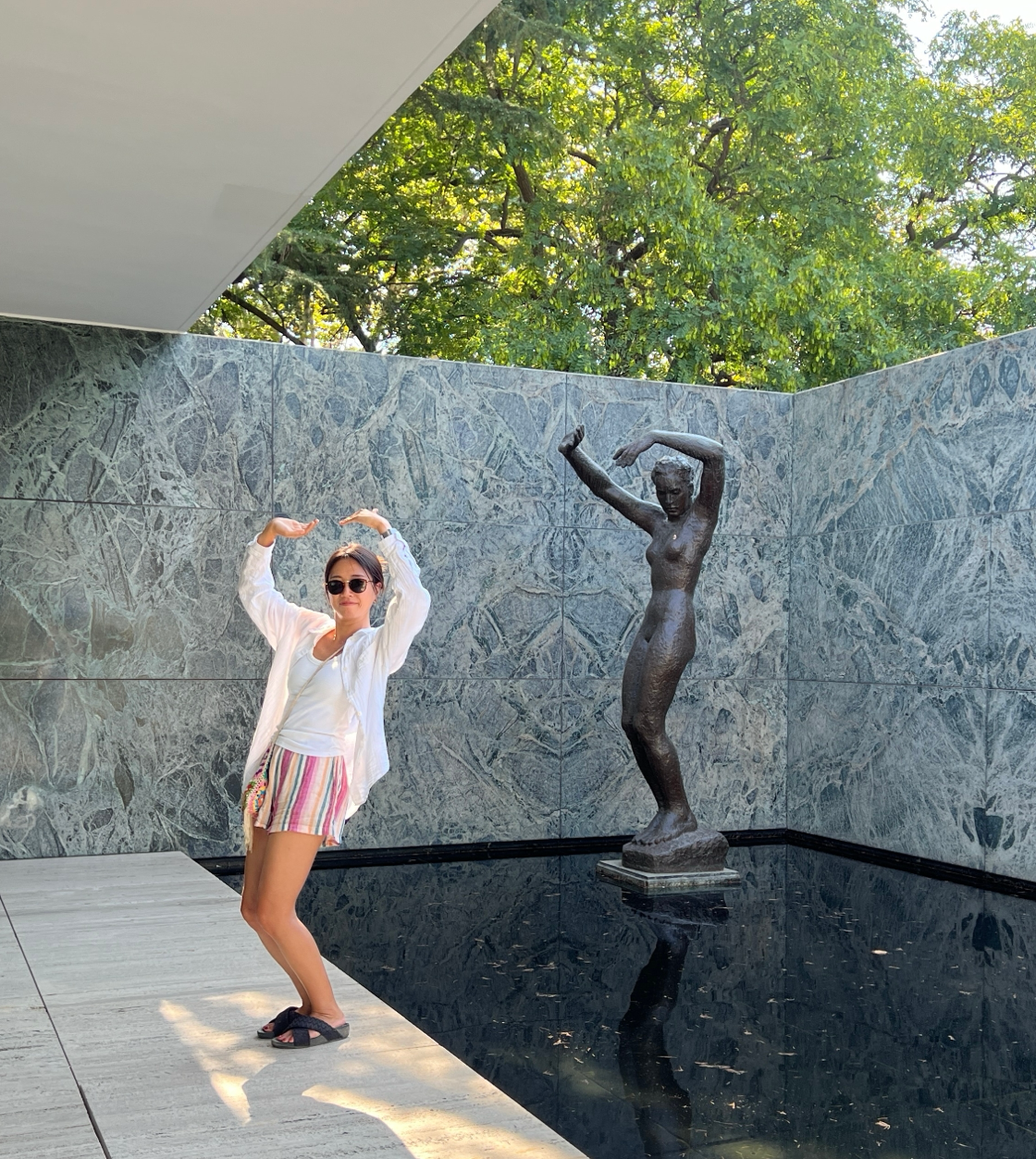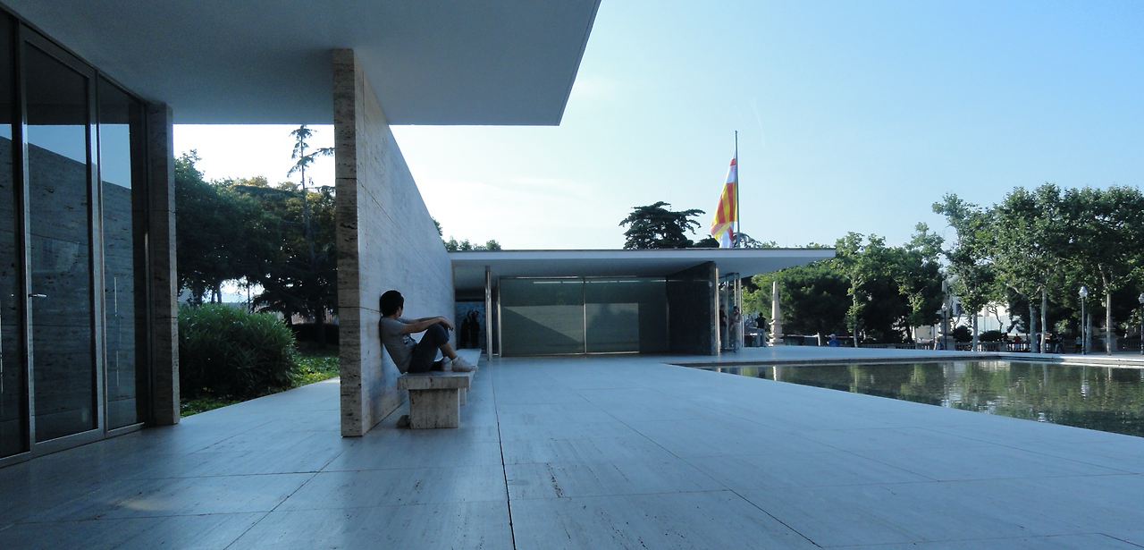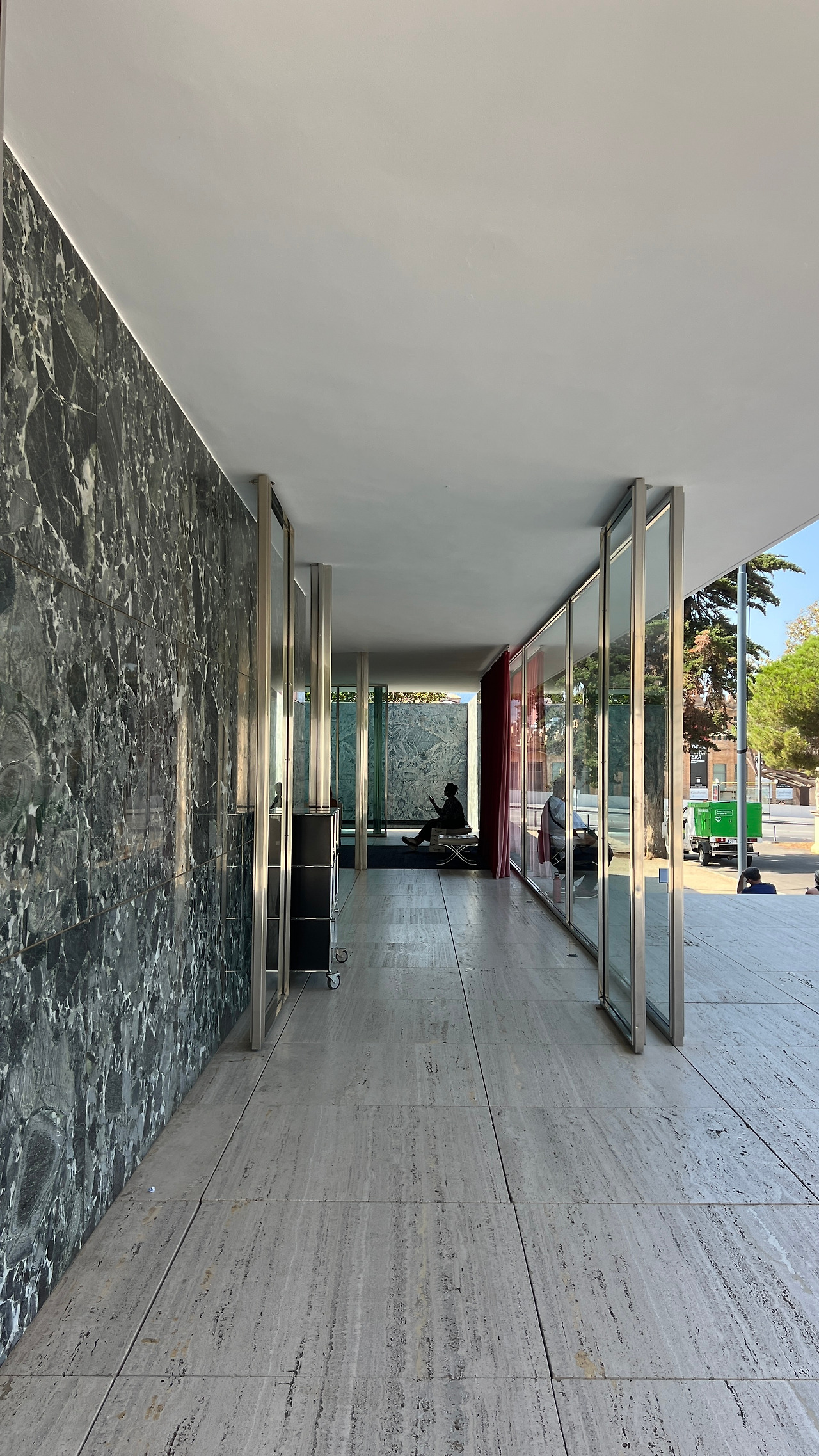 1929년 바르셀로나 국제박람회(Expo) 독일관으로 설계된 파빌리온을 보러 왔다. 독일의 근대적, 진보적 이미지를 전 세계에 과시하기 위한 전시용 국가관으로 건축계의 또 한 명의 거장 루트비히 미스 반 데어 로에(Ludwig Mies van der Rohe)의 작품이다.