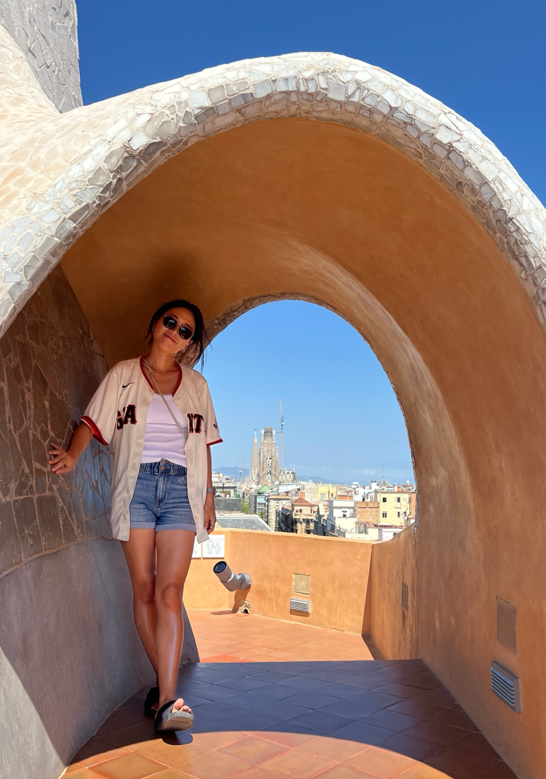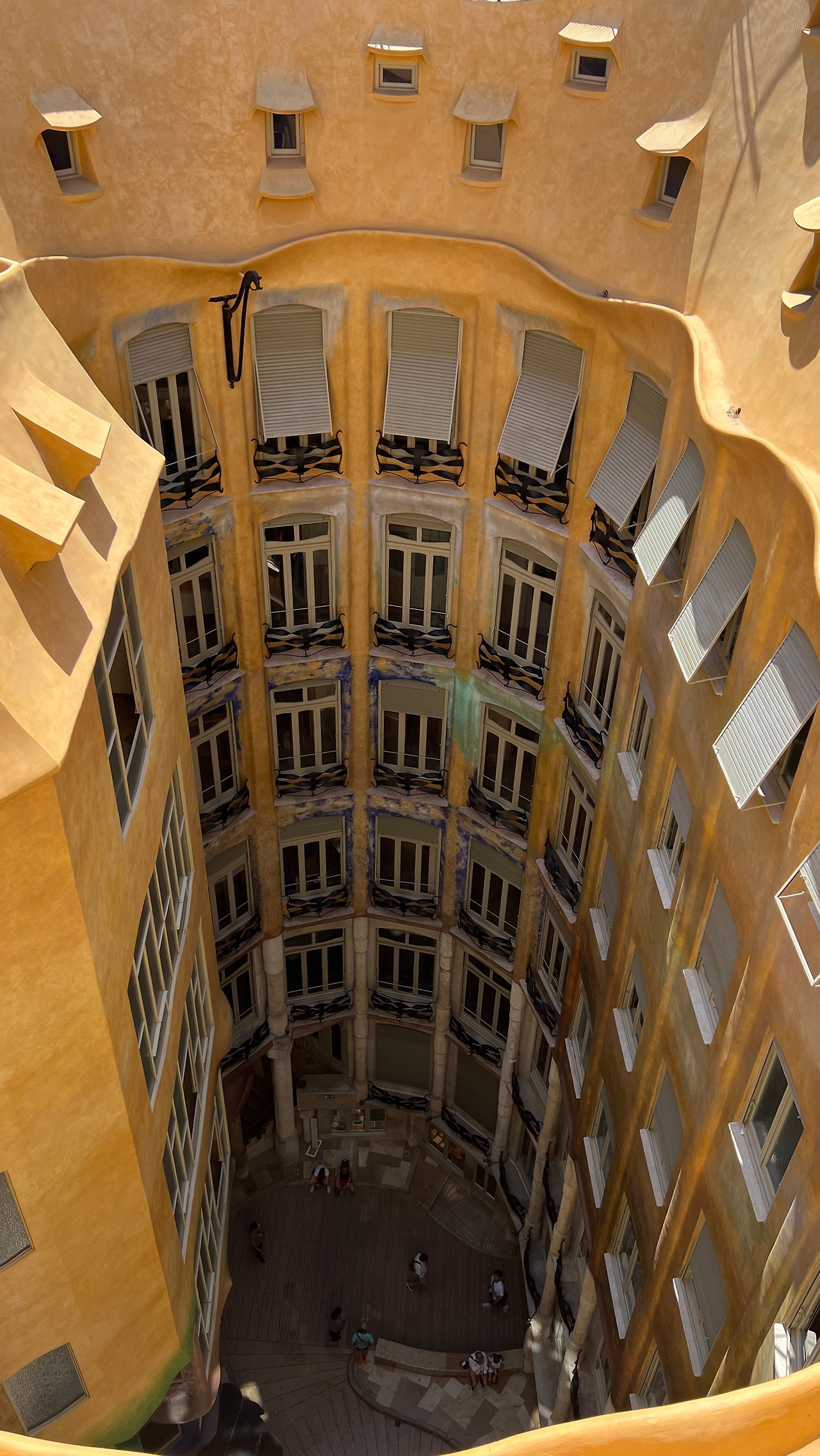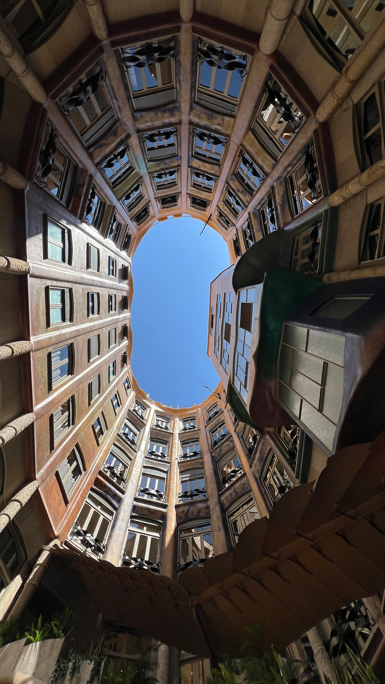 그리고 옥상에 올라서자 눈앞에 바르셀로나의 전경이 펼쳐졌다. 파도처럼 굽이진 지붕 위에는 기하학적인 형태의 굴뚝들이 줄지어 서 있었다. 조금 떨어진 곳에는 여전히 공사 중인 사그라다 파밀리아가 보였는데, 같은 하늘 아래 가우디의 두 작품이 서로 마주 보고 있다는 사실만으로도 묘한 감동이 밀려왔다.