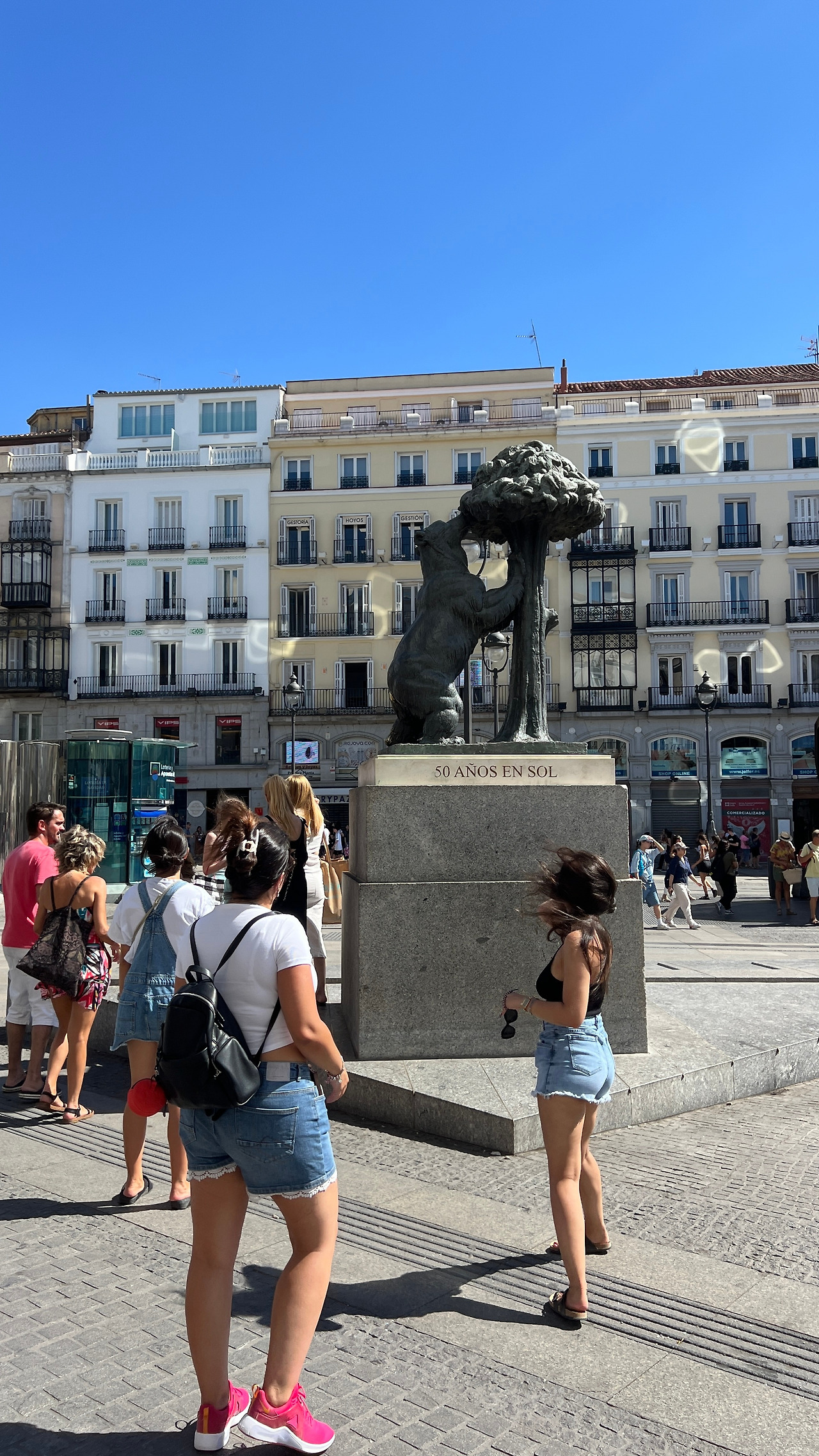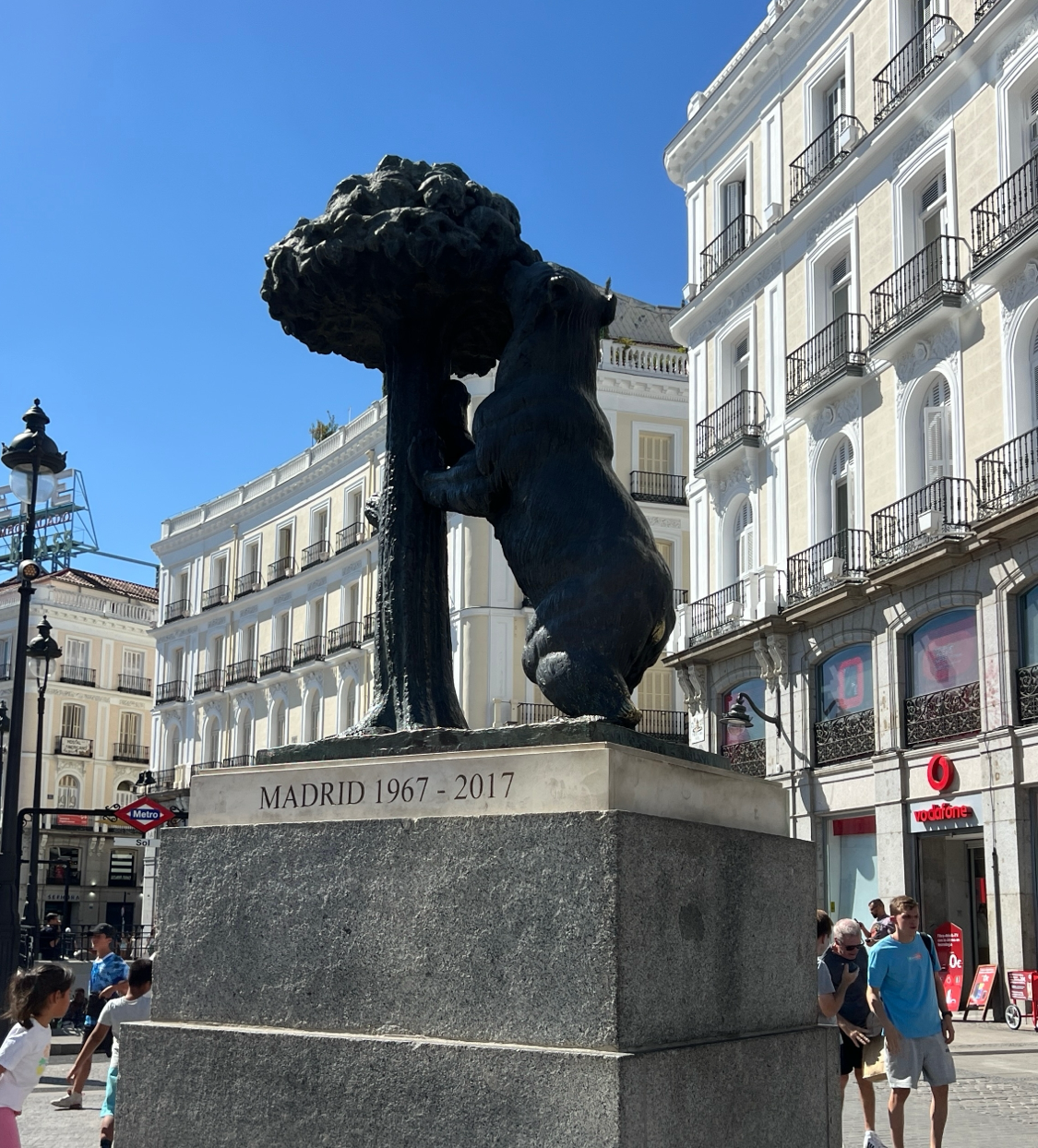 그래도 유명한 곳 몇 군데는 가보자고 해서 찾은 곳 중 가장 먼저 방문한 곳이 바로 솔 광장이다. 솔 광장은 4층 규모의 건물들이 둘러싼 광장인데 중앙에 마드리드를 상징하는 곰과 산딸기나무 동상이 세워져 있다. 지금은 마드리드 지역에서 야생곰은 찾아볼 수 없게 되었지만 예전에는 곰과 함께 산딸기나무가 많았다고 한다.
