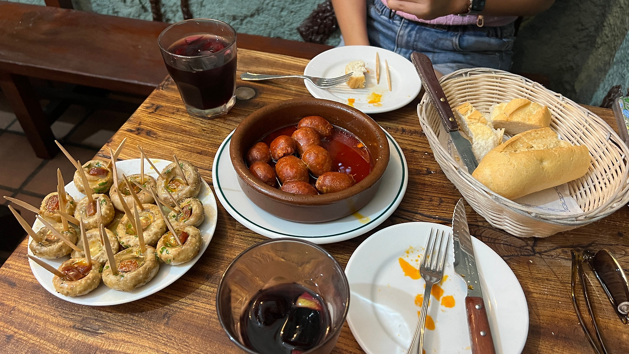 플라자 마요르광장 근처에 위치한 Mesón del Champiñón에 버섯구이가 유명하다고 해서 찾아갔다. 연간 4톤 이상의 버섯을 요리할 만큼 인기 많은 레스토랑이다. 내부 인테리어는 버섯이 자라는 동굴 같은 형태여서 독특했다.