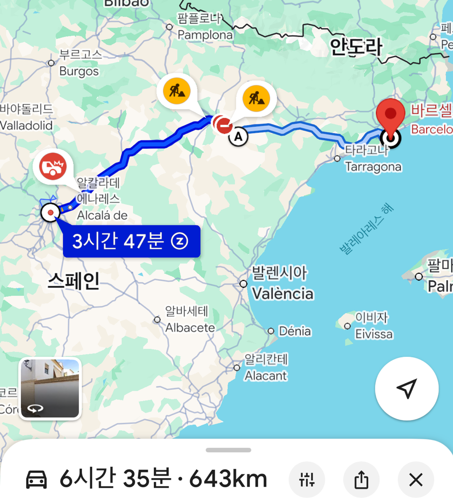 마드리드에서 3박을 하고 바르셀로나로 이동을 하기 위해 체크아웃을 하고 출발했다. 바르셀로나까지는 600km가 넘는 거리여서 중간지점인 젤사(Gelsa)라는 곳에서 하루 쉬었다 가기로 했다. 뭐가 있어서라기보다 마드리드를 벗어나면서 대형 쇼핑몰을 들렀다 오느라 바르셀로나 도착시간이 너무 늦어지기도 했고 몬세라트라는 유명 관광지를 둘러보려면 시간이 더 필요했기 때문이다.