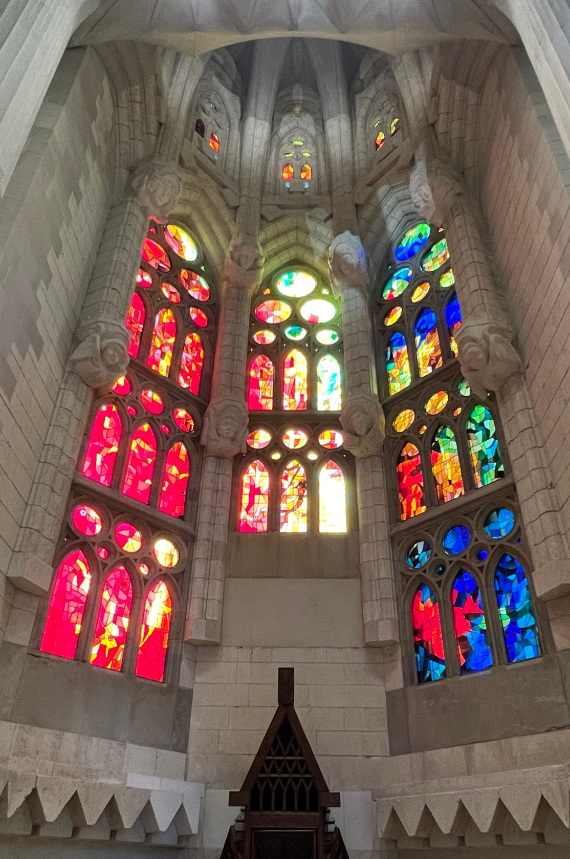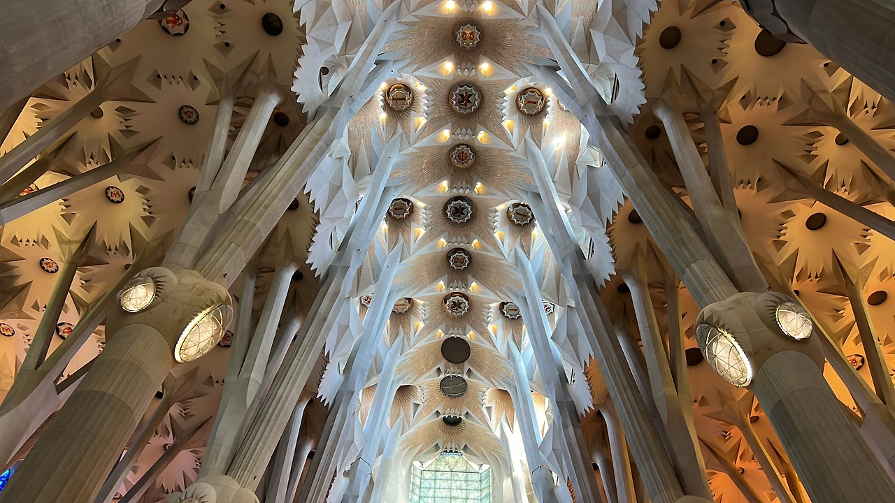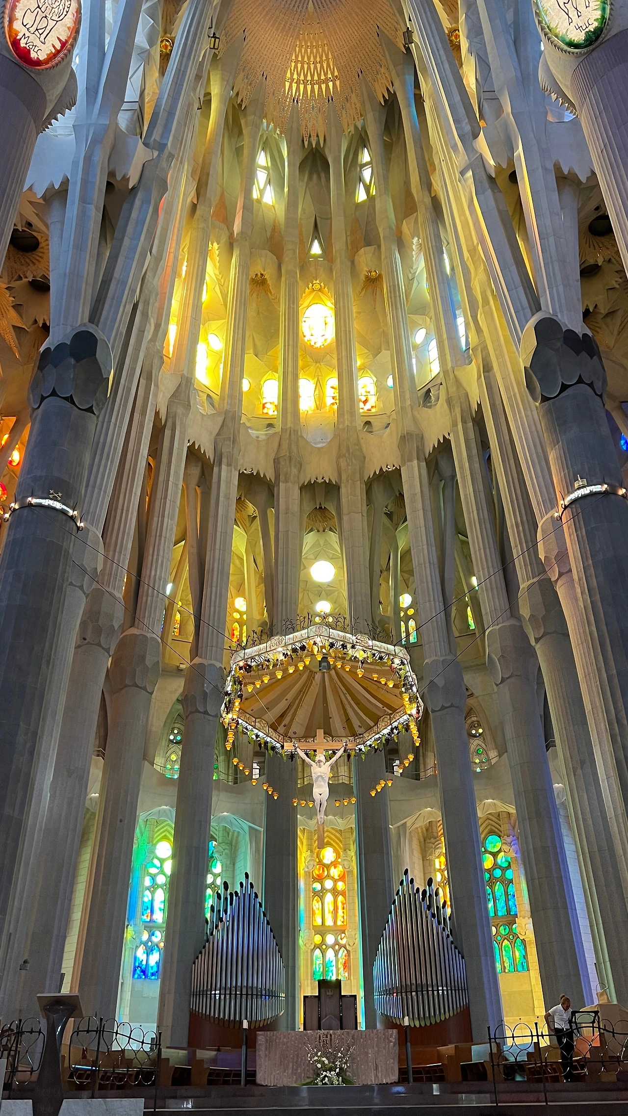 외부 파사드의 조각들에 대한 설명을 듣고 나서 내부로 들어가면 그 황홀함에 모두 천장을 바라보게 된다. 숲처럼 뻗은 기둥, 스테인드글라스 창을 통한 빛의 연출이 구현되어 사람들에게 큰 감동을 준다. 예전과 비교했을 때 첨탑들이 완성되면서 내부에서도 더 다양한 빛이 들어오고, 높이감이 극적으로 강화된 모습이었다.