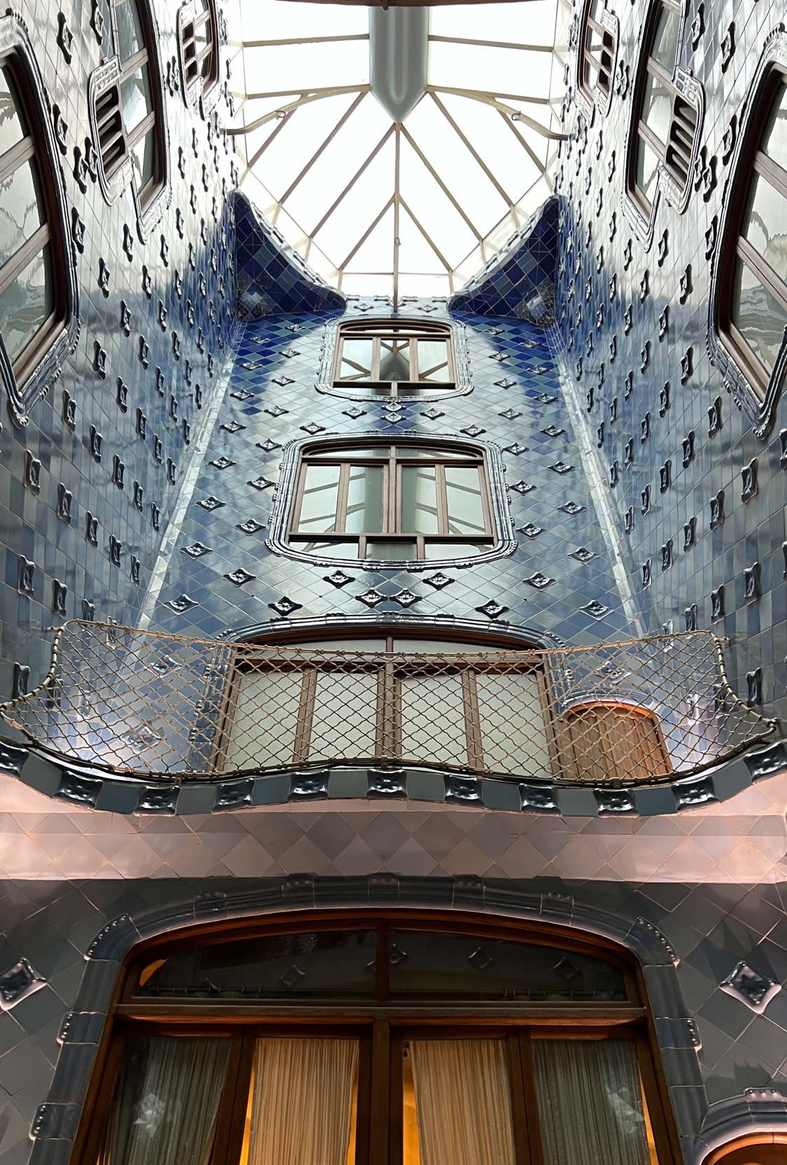 카사 바트요의 가장 큰 특징 중 하나가 바로 이 파티오(PATIO) 중정이다. 건물 전체 세대에 자연광과 환기를 공급하기 위해 고안한 시스템이다. 타일을 위쪽은 진한 파란색, 아래쪽은 옅은 색으로 배치하여 햇빛이 아래층까지 균일하게 퍼지도록 계산했다고 한다.