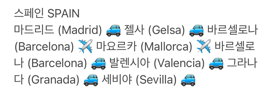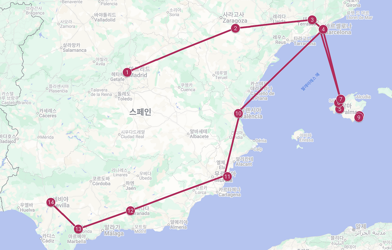 차를 타고 이동을 하면서 유럽을 여행할 때는 효율적인 동선을 계획할 수 없다는 걸 알게 되었다. 좀 더 P스러운 여행에 동참하기로 하고 그때그때 행선지를 정했다. 마드리스에서 차량을 인수받아 바르셀로나로 향했다. 그리고 바르셀로나 공항에 주차를 해놓고 스페인에서 유명한 휴양섬 마요르카를 다녀왔다. 다시 바르셀로나로 돌아와 발렌시아와 그라나다를 거쳐 세비야를 여행하면서 스페인 남부를 돌아보았다.