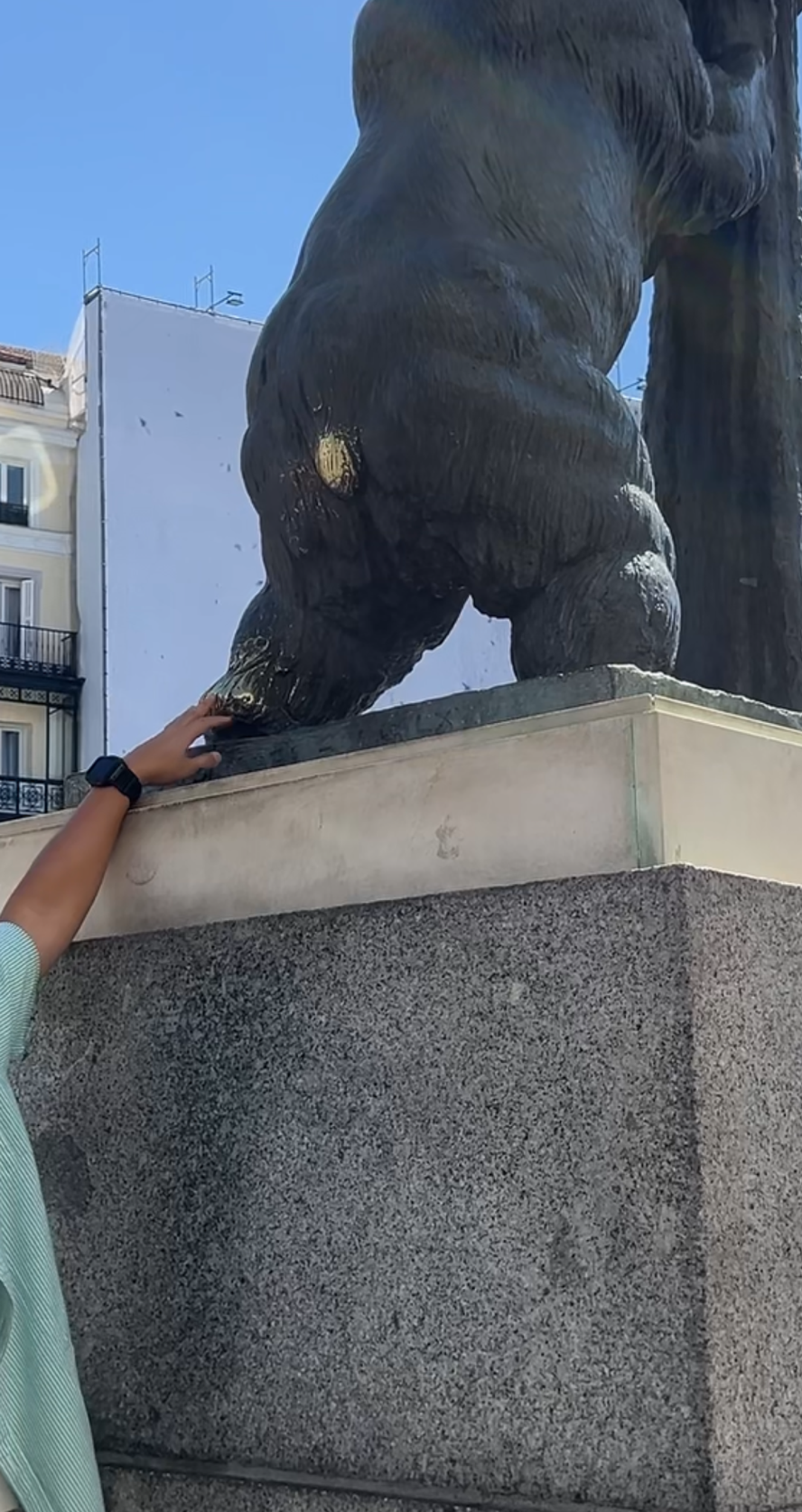 뉴욕 월스트리트에서 봤던 돌진하는 황소동상처럼 마드리드 곰도 사람들의 손길에 의해서 발과 꼬리 쪽 색상이 변해있었다. 곰의 코와 산딸기나무를 만지면 행운이 온다는 글도 있었는데 상당히 높아서 만지기는 불가능 할거 같다.