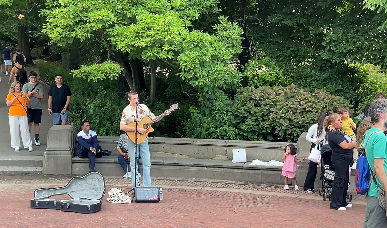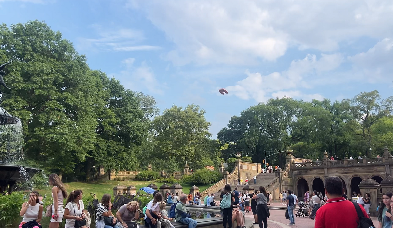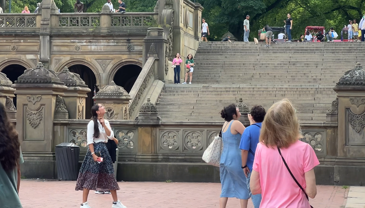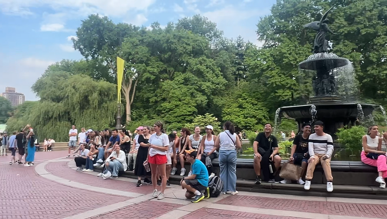 뉴욕 센트럴파크에 분수대에 앉아 버스킹을 보며 여유를 즐기고 있었다. 말끔하게 차려입은 무리가 나타나 부산스럽게 뭔가를 준비한다.