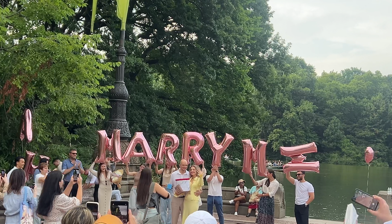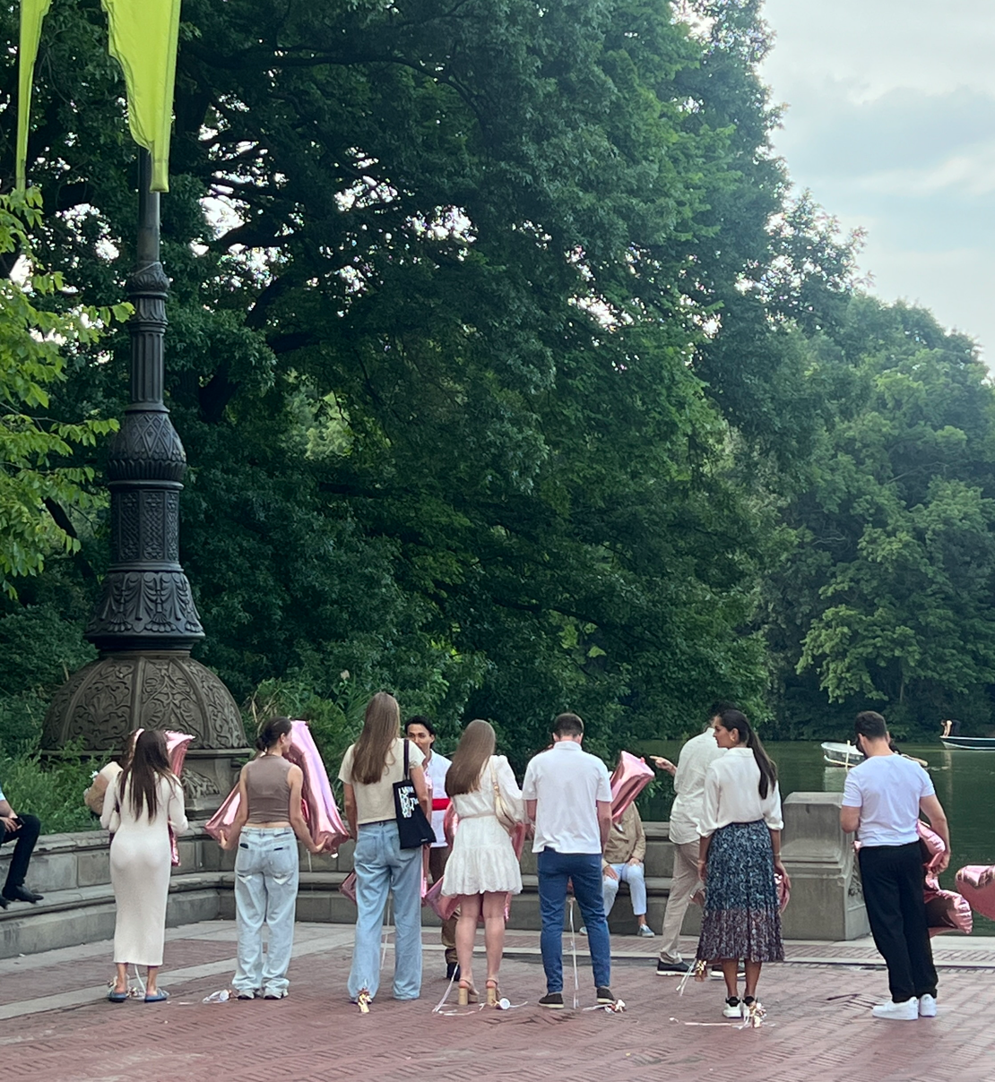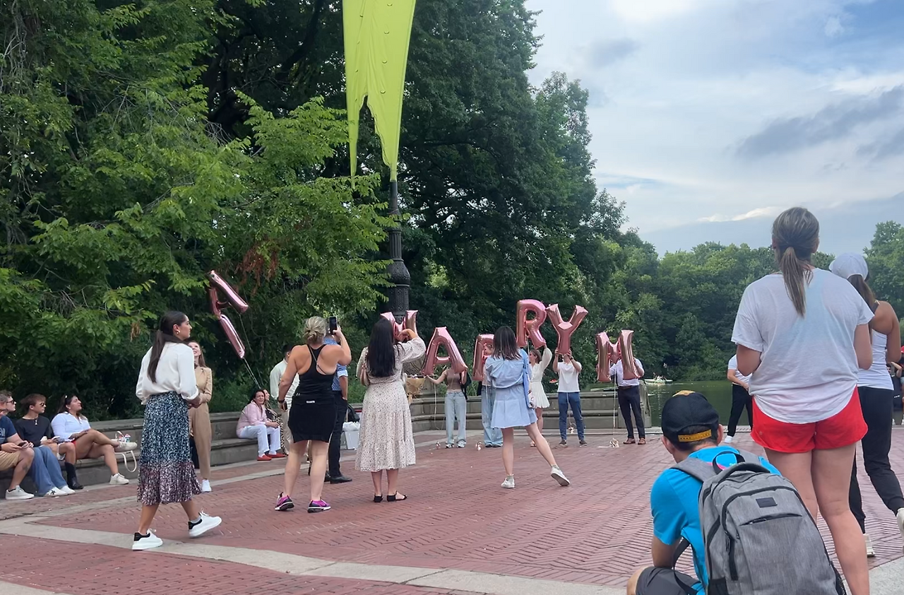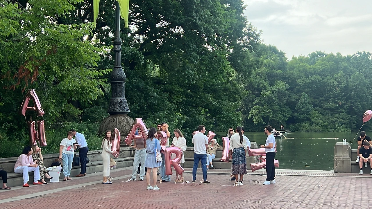 프로포즈 이벤트였다. 주인공을 돕기 위해 친구들이 나선 듯했다. 주인공 커플이 오기 전에 예쁜 핑크색 알파벳 풍선을 하나씩 들고 기념사진을 찍는다.