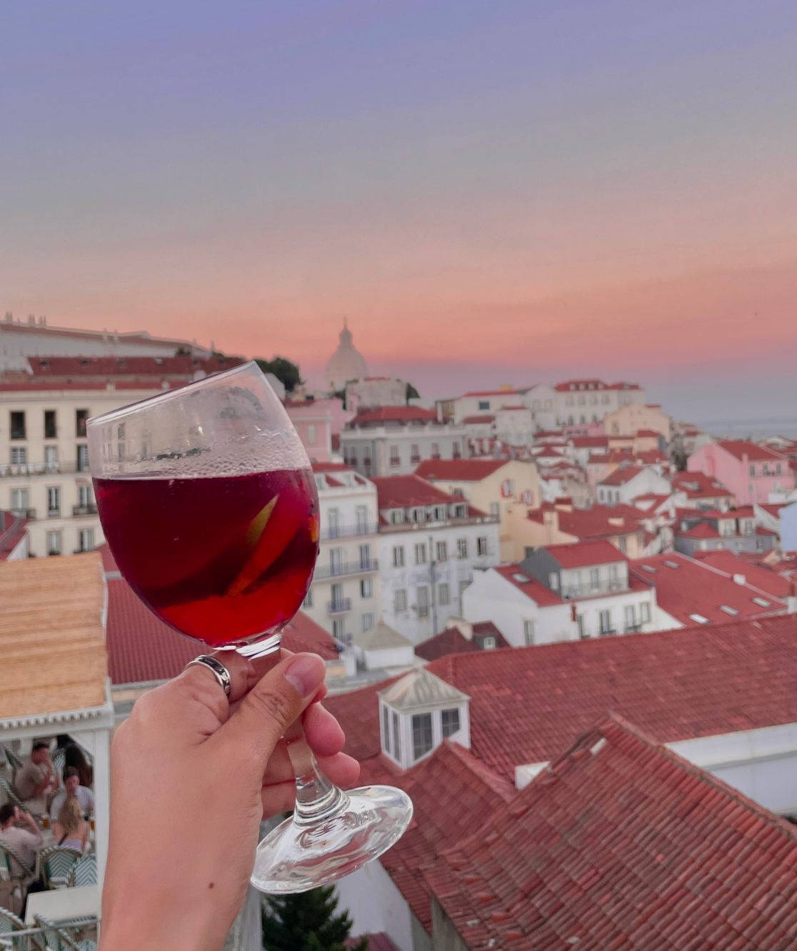 트램을 타고 경사를 올라 도착한 산타루치아 전망대는 리스본에서 가장 유명한 야경명소 중 하나다. 노을이 질 무렵 도착했는데 굉장히 많은 인파가 몰려 있었다.