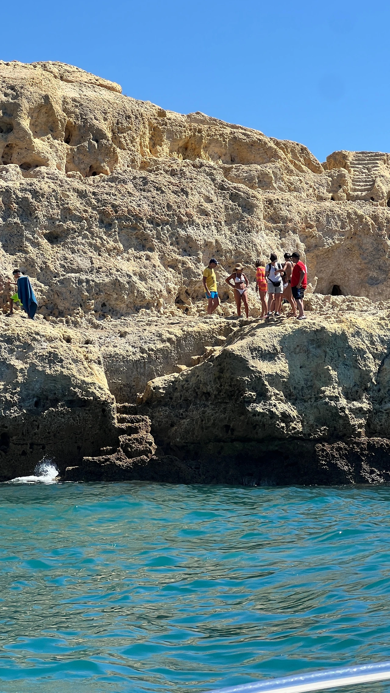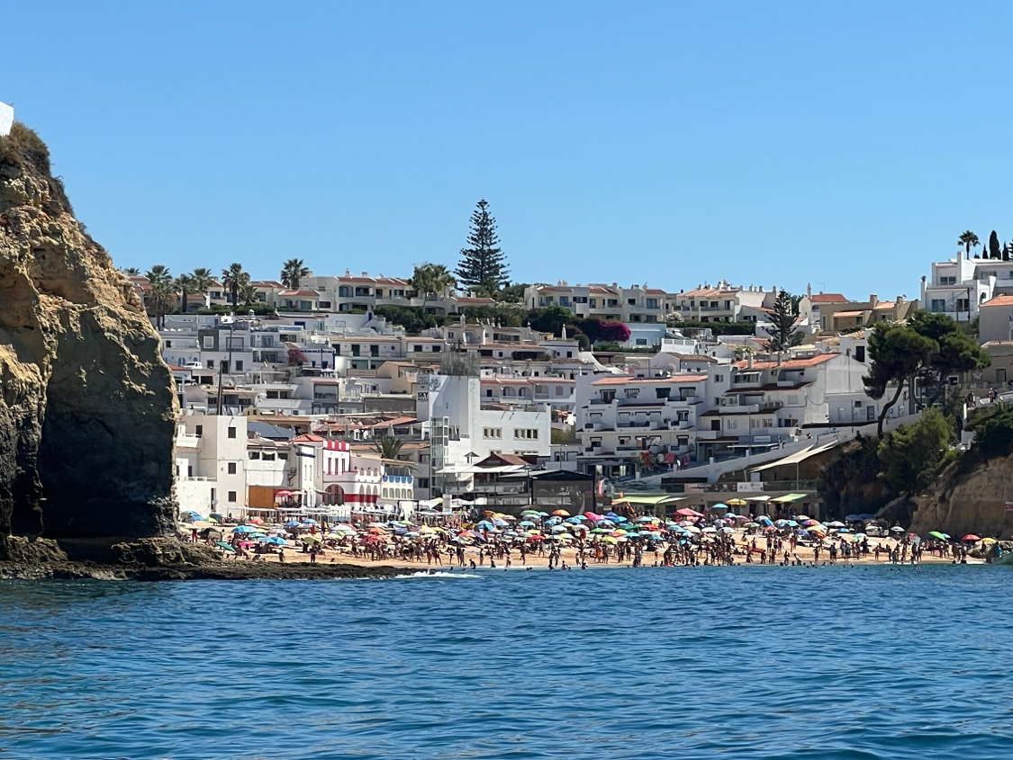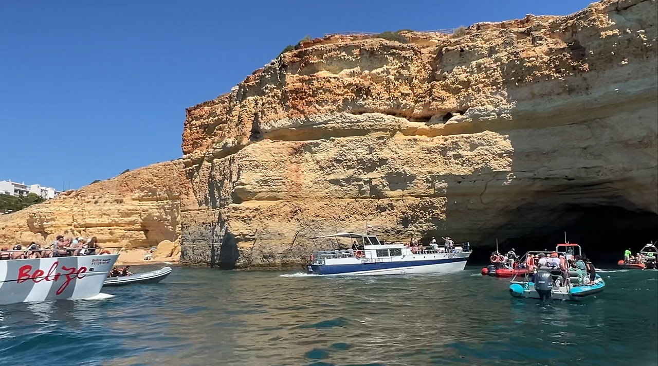 우리가 예약한 투어는 12명 정도 앉을 수 있는 스피드 보트를 타고 약 두 시간가량 알부페이라의 절벽 해안을 둘러보는 투어다. 절벽해안을 따라 형성된 해변에는 더위를 피해 수많은 사람들이 일광욕을 즐기고 있었다.