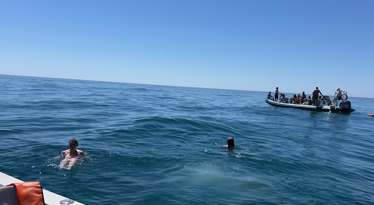돌아오는 길에 바다 한가운데 보트를 정박했다. 투어 프로그램에 바다 수영이 있었기 때문이다. 바다에 들어가고 싶지 않아 애초에 수영복을 입고 가지 않은 우리 부부만 제외하고 모두 대서양 바다에 뛰어들었다. 이집트 다합에서 프리다이빙 자격증을 땄지만 스노클 장비 없이 바다에 뛰어드는 건 아직 무리다.
