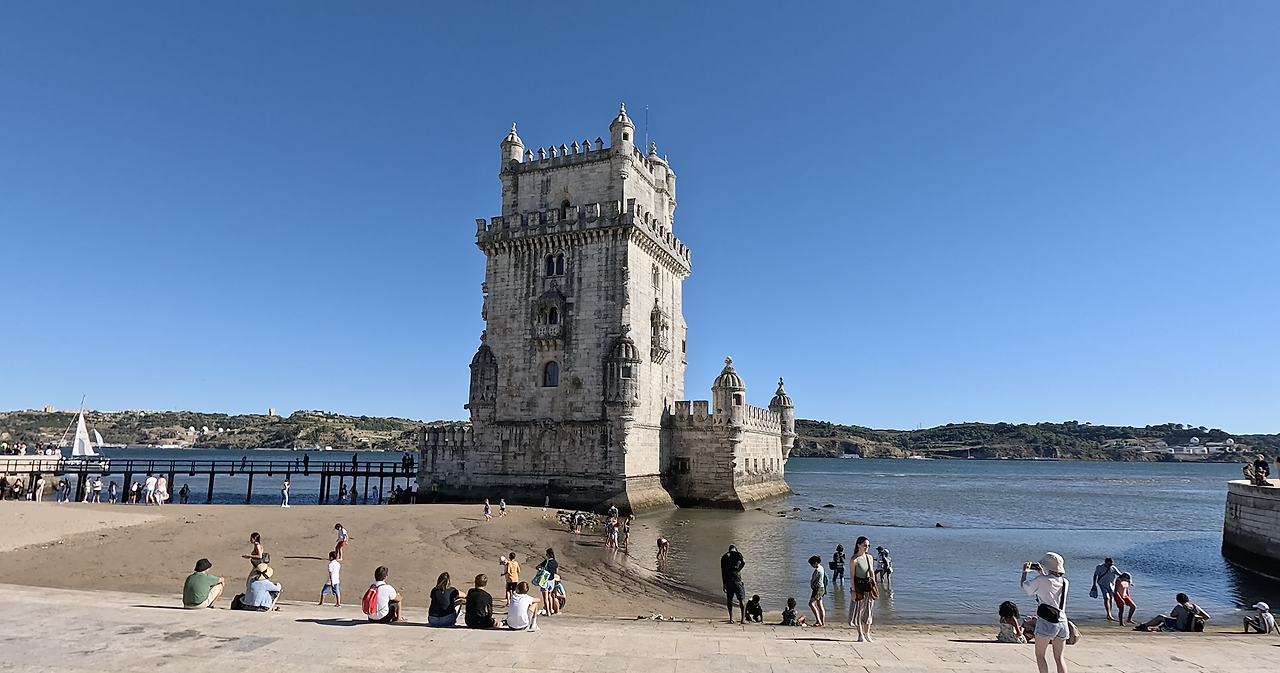 기념탑에서 강을 따라 조금 걸어가면 대항해시대 탐험선들이 출항하던 상징적 장소인 벨렝탑이 나온다. 1520년에 지어진 해상방어 요새로 지금은 지상과 연결되어 있지만 예전에는 강 한가운데 작은 섬 위에 있었다고 한다. 앞쪽에 넓은 계단으로 이루어진 광장이 있어서 시원한 강바람을 맞으며 앉아서 쉬기 좋았다.