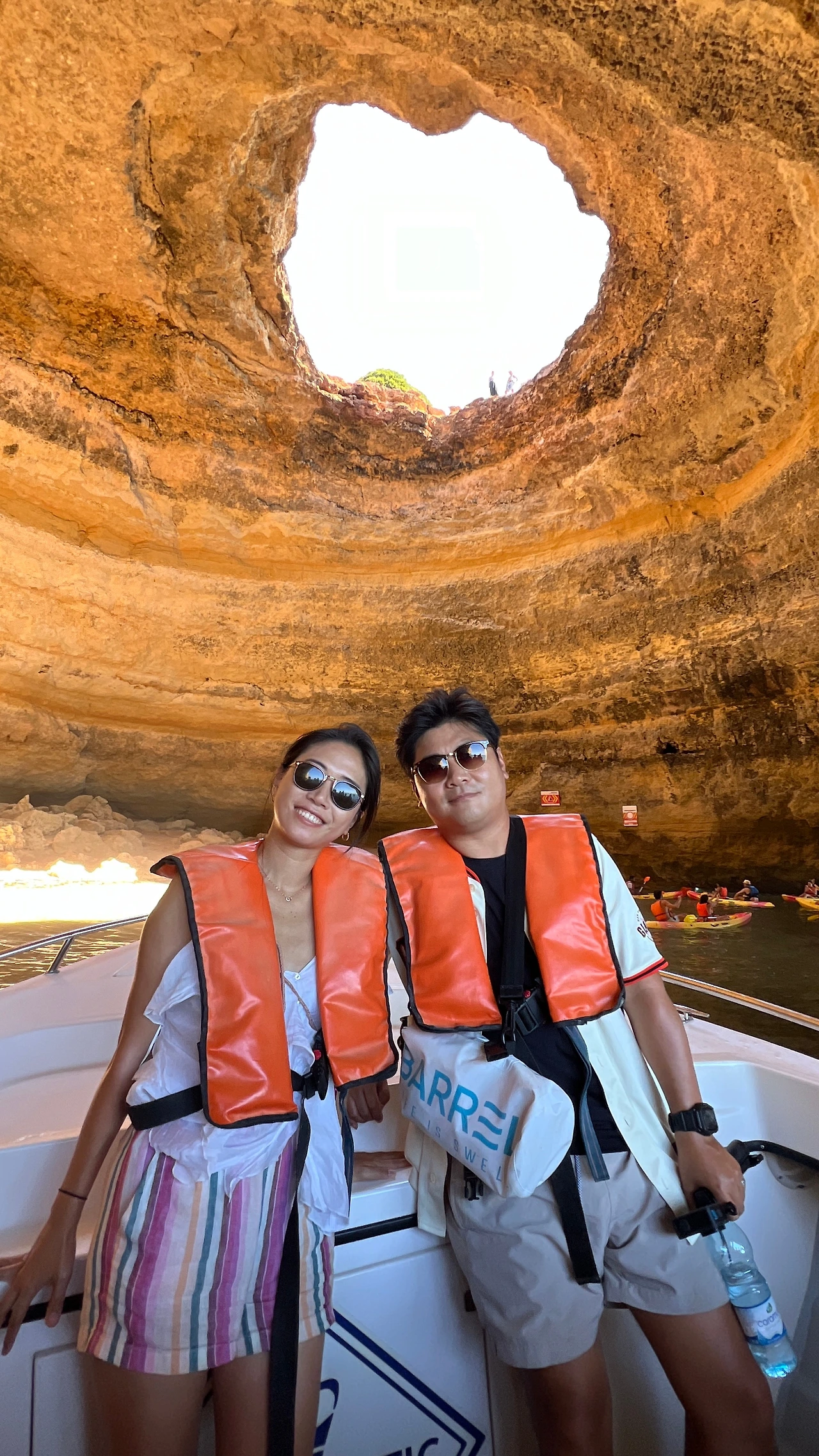 절벽사이의 작은 해변을 지나, 축구감독 무리뉴 등 유명인사들의 별장에 대한 설명을 들었다. 다이빙을 즐기며 우리를 향해 인사를 해주는 사람들에게 손을 흔들어 주다 보니 베나길 동굴에 도착했다.