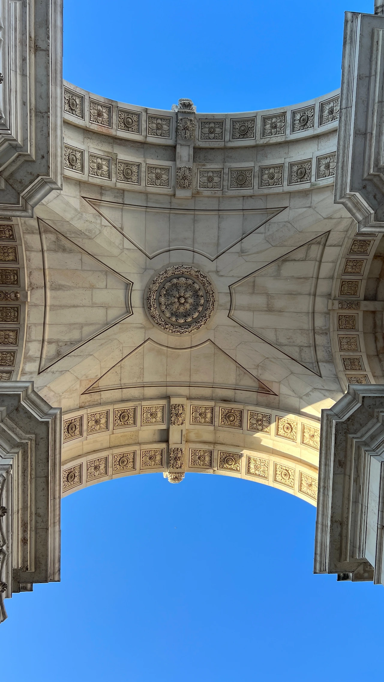 광장에 들어서려면 아우구스타 스트리트 아치 (Arco Triunfal da Rua Augusta)를 지나가야 한다. 프라사 두 코메르시우(Praça do Comércio)의 북쪽 입구를 장식하는 웅장한 아치형태의 개선문인데, 단순한 도시의 문이 아니라, 리스본이 폐허에서 다시 일어섰음을 상징하는 기념비라고 한다.