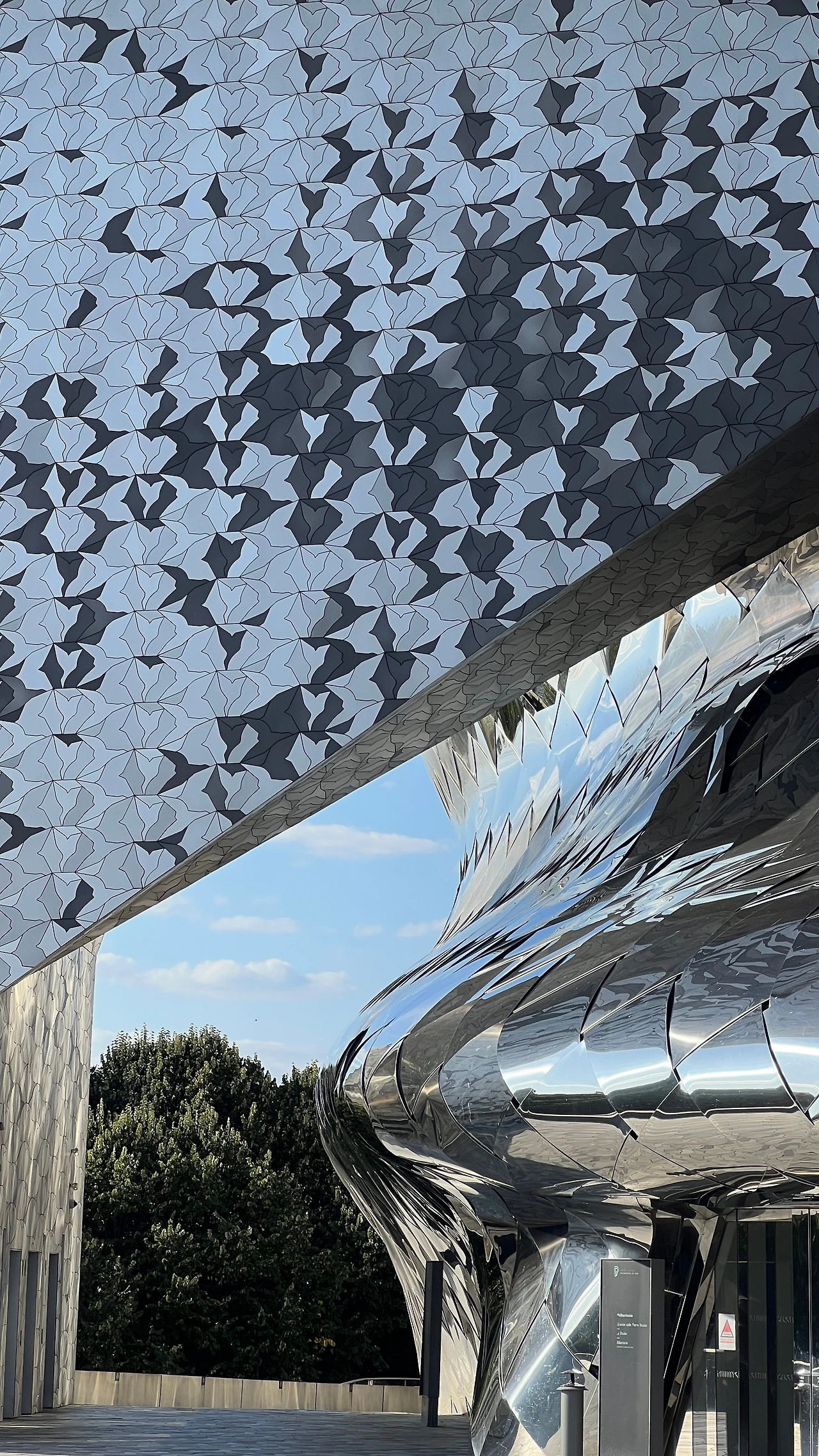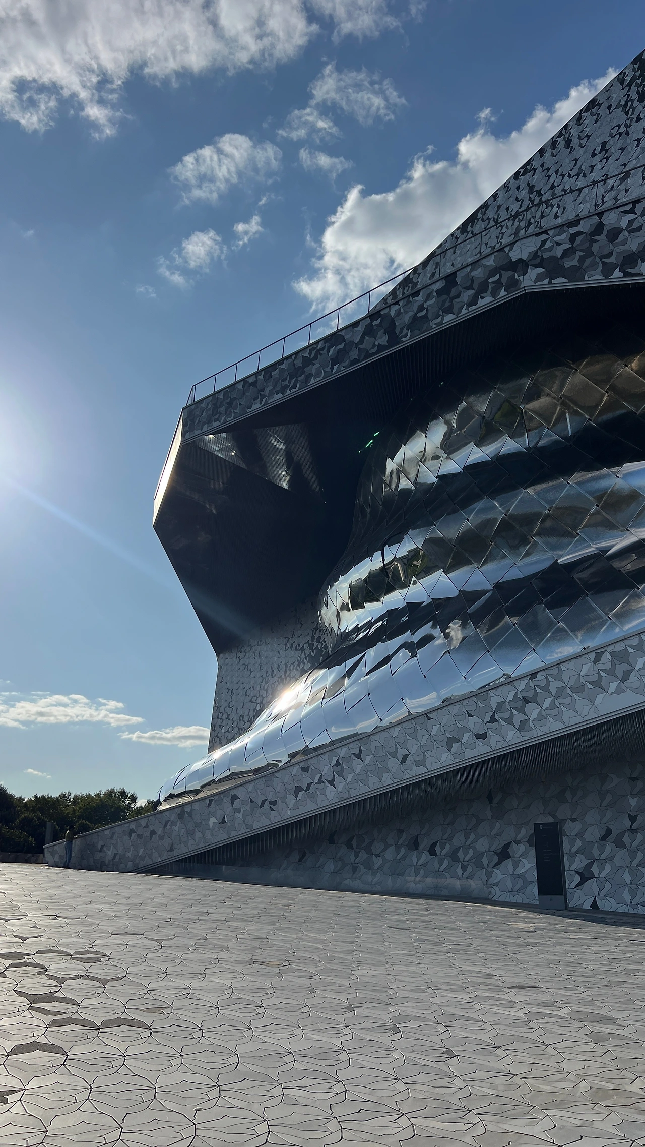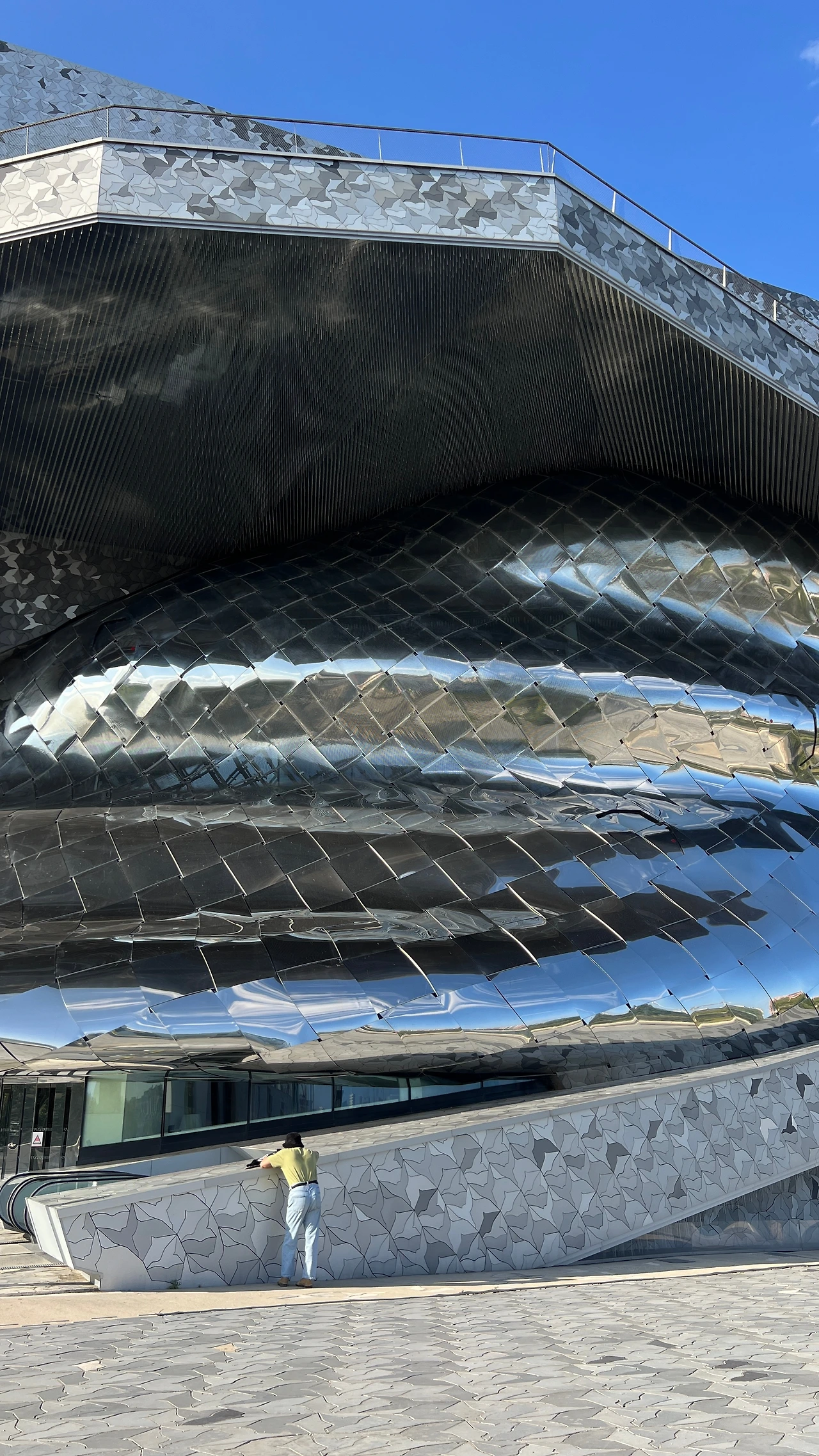 필하모니의 외관은 약 34만 개의 알루미늄 타일이 서로 다른 패턴으로 얽혀 있다. 건물 주변 바닥까지도 같은 패턴 흐름을 이어 놓아, 외관과 땅이 자연스럽게 연결되는 느낌이었다. 설계 의도가 섬세하게 드러나는 부분이었고 얼마나 많은 비용과 시간이 들어갔을지 짐작이 갔다.
