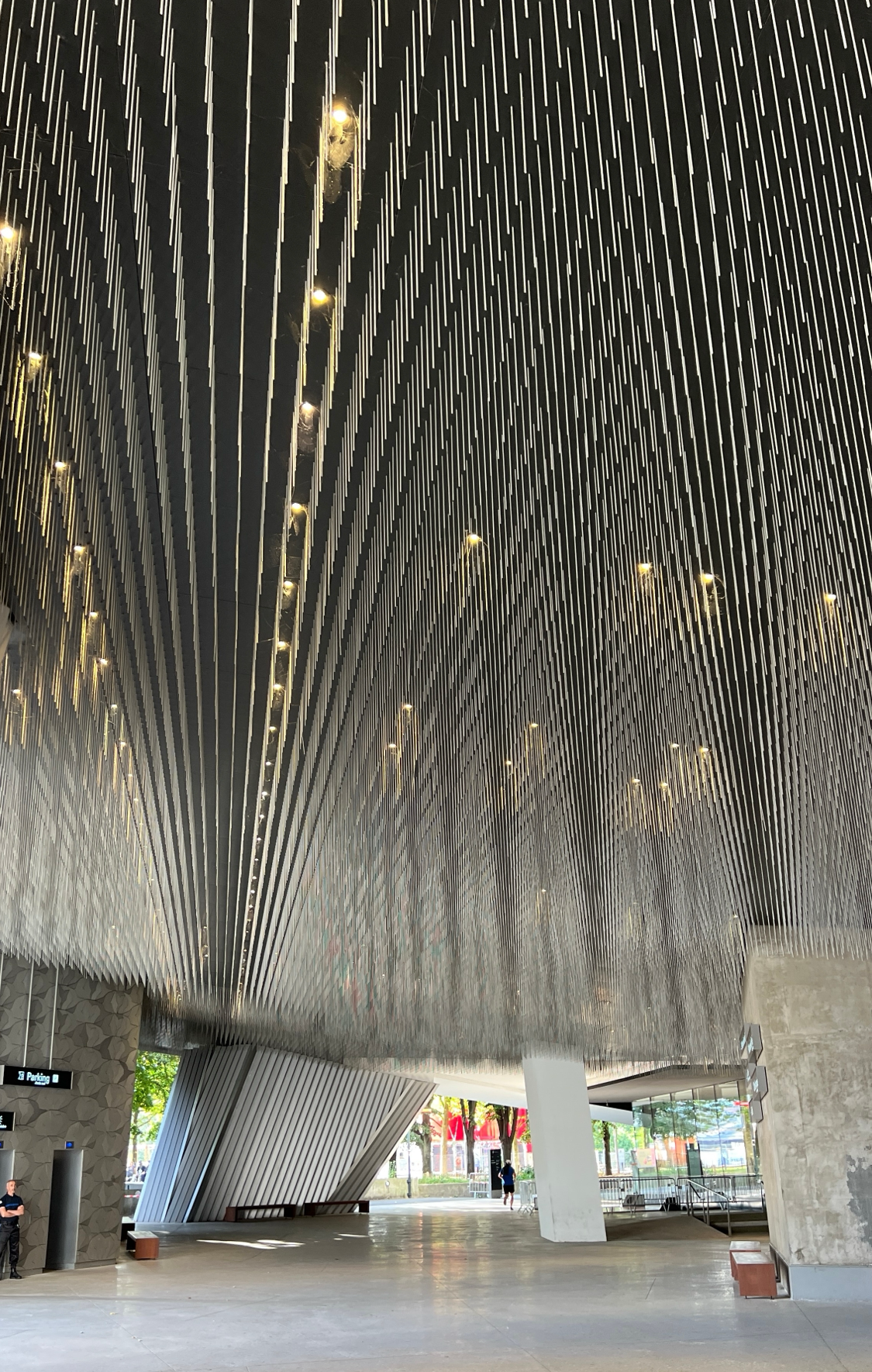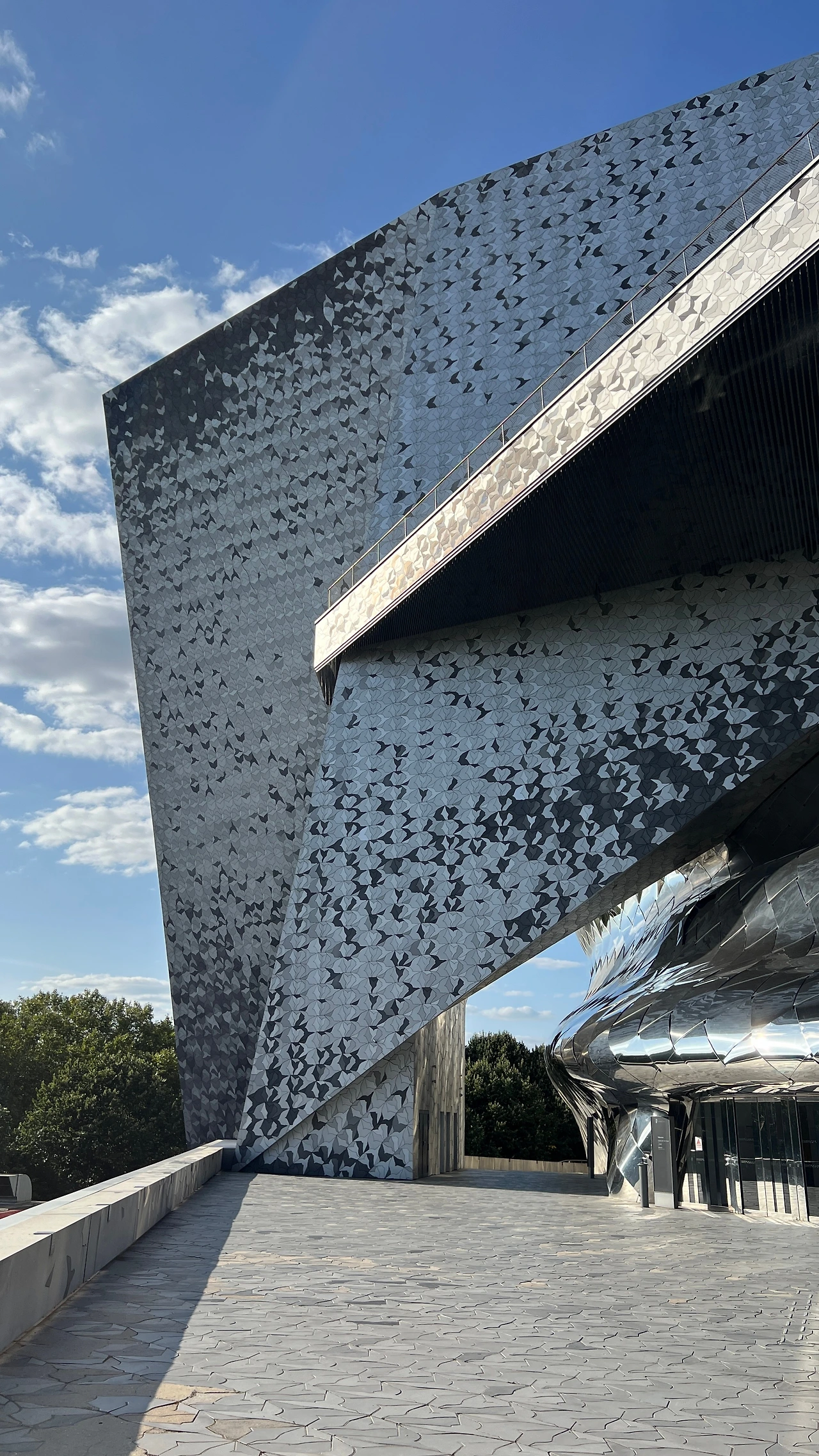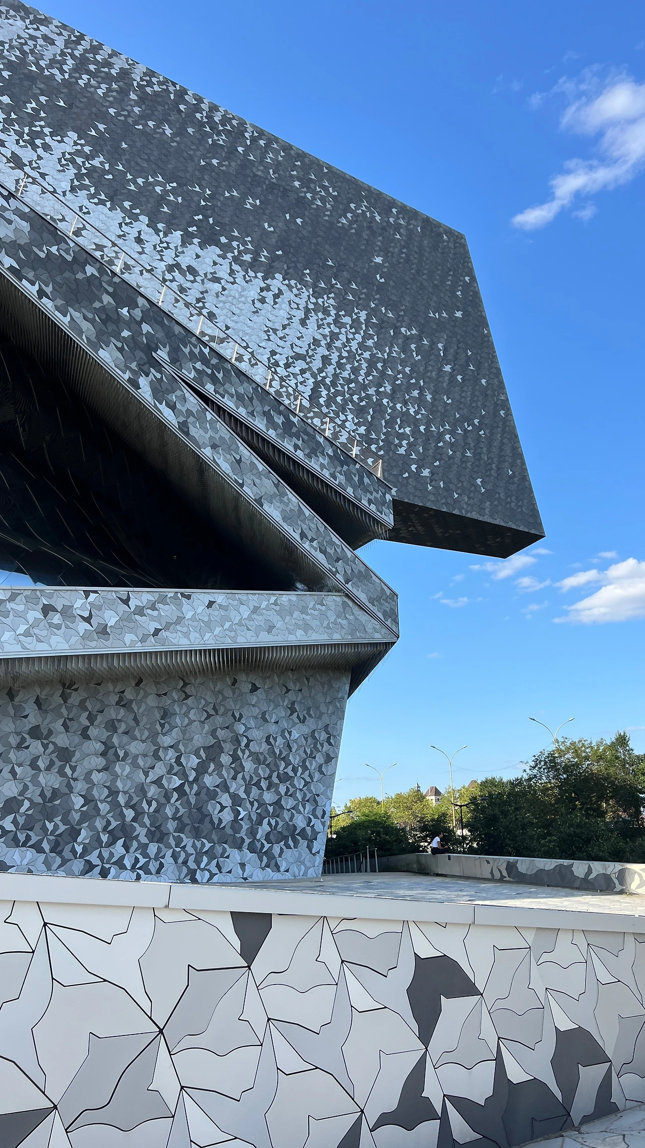 필하모니의 외관은 약 34만 개의 알루미늄 타일이 서로 다른 패턴으로 얽혀 있다. 건물 주변 바닥까지도 같은 패턴 흐름을 이어 놓아, 외관과 땅이 자연스럽게 연결되는 느낌이었다. 설계 의도가 섬세하게 드러나는 부분이었고 얼마나 많은 비용과 시간이 들어갔을지 짐작이 갔다.