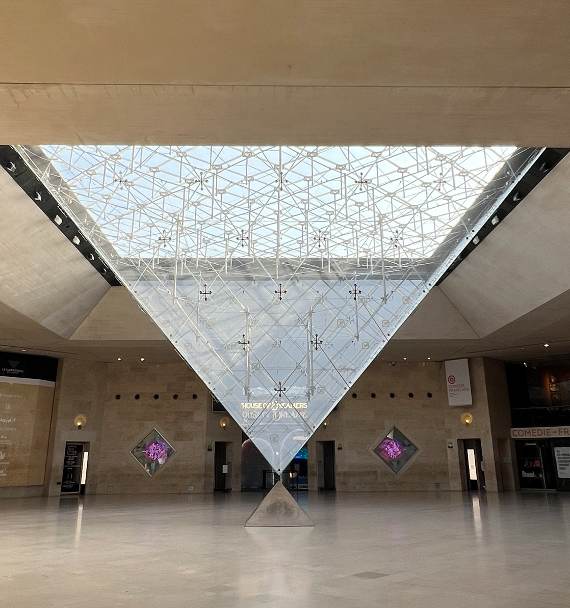 1980년대 여러 곳으로 분산되어 비효율적이던 동선체계를 유리 피라미드를 만들어서 중앙집중형 출입구로 거대한 관람객 규모를 처리하기 용이하게 만들었다고 한다.