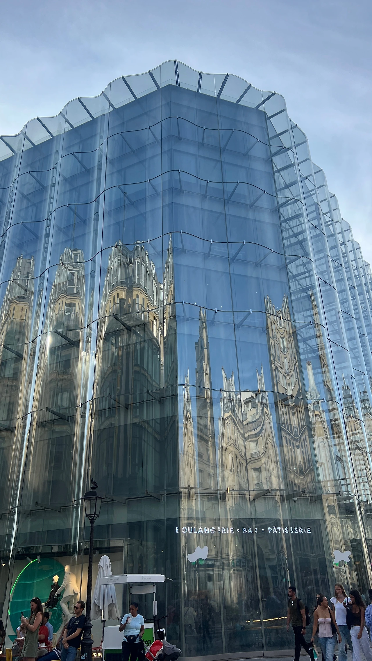 전통 석조건물이 많은 파리의 거리에서 무거운 재료 대신 투명하고 물결치는 유리를 사용함으로써 가볍고도 리듬감 있는 입면으로 차별화한 것이 특징이다. 단순한 디자인이 아니라 재료가 진화할 때 건축이 어디까지 달라질 수 있는지 보여주는, 하나의 실험이자 결과물이었다.
